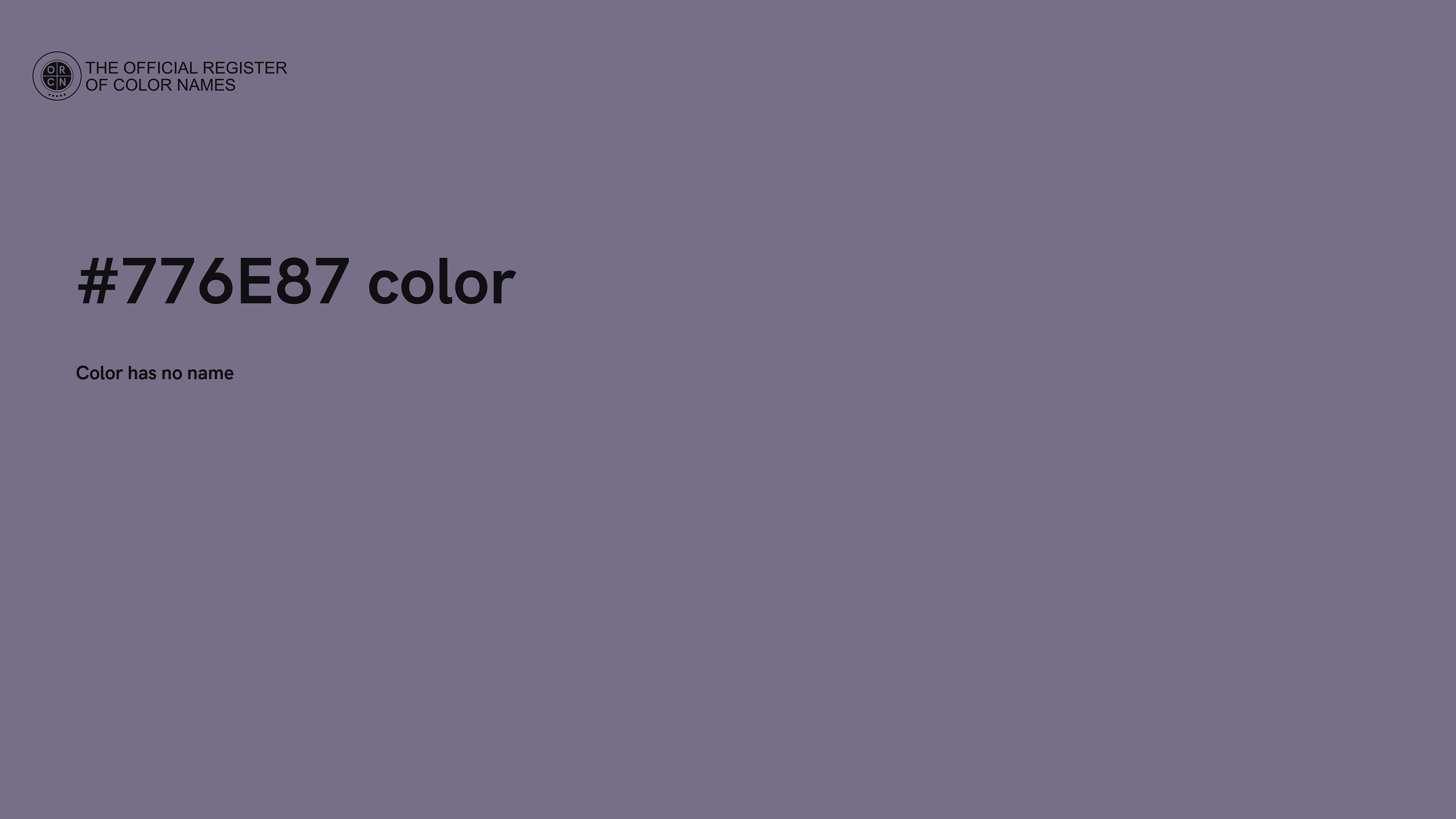 The digital color HEX #776E87 belongs to the Violet Color Family featuring Low Saturation (Saturation Family) and Light (Brightness Family).