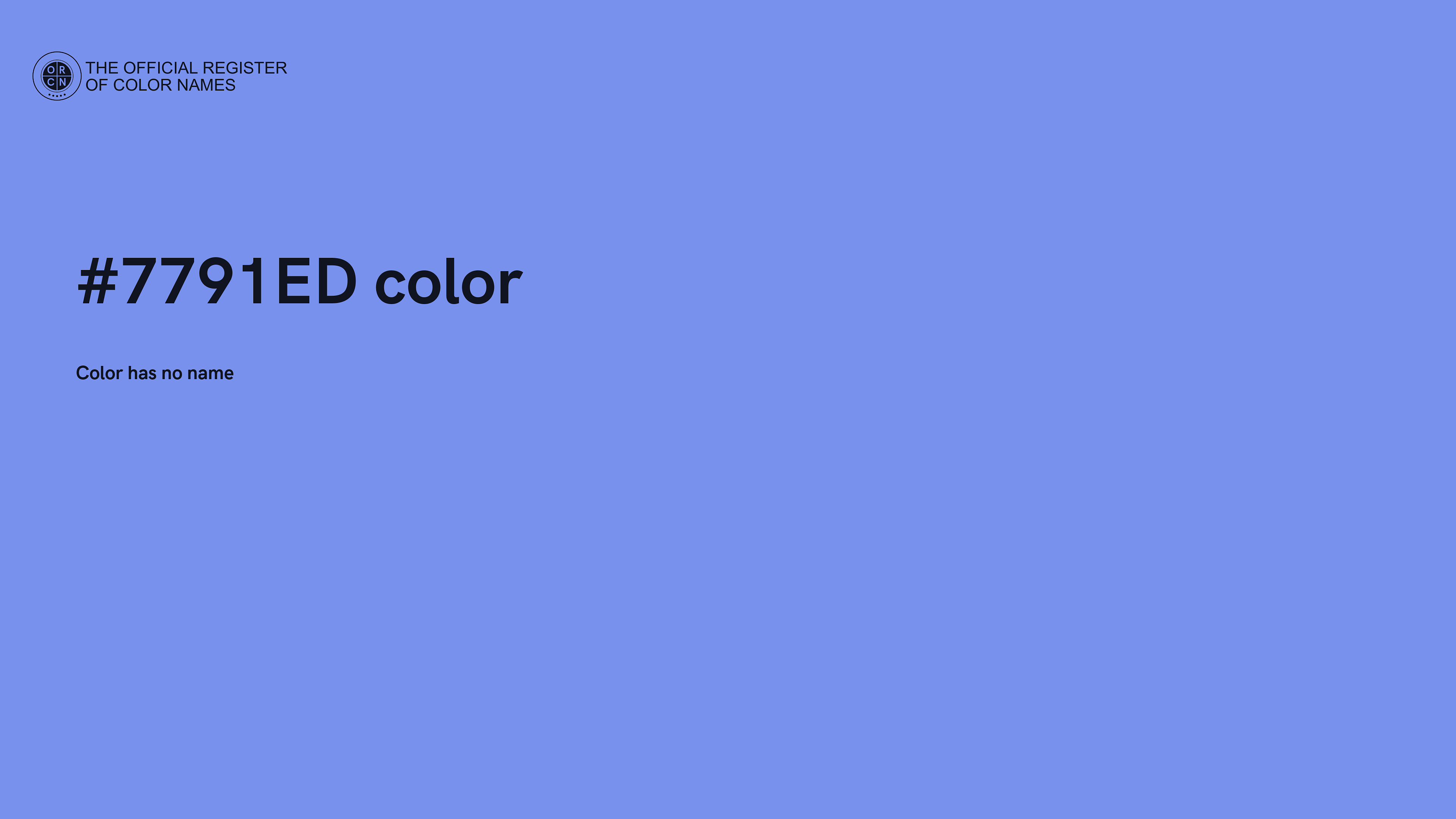 The digital color HEX #7791ED belongs to the Blue Color Family featuring High Saturation (Saturation Family) and Very Light (Brightness Family).