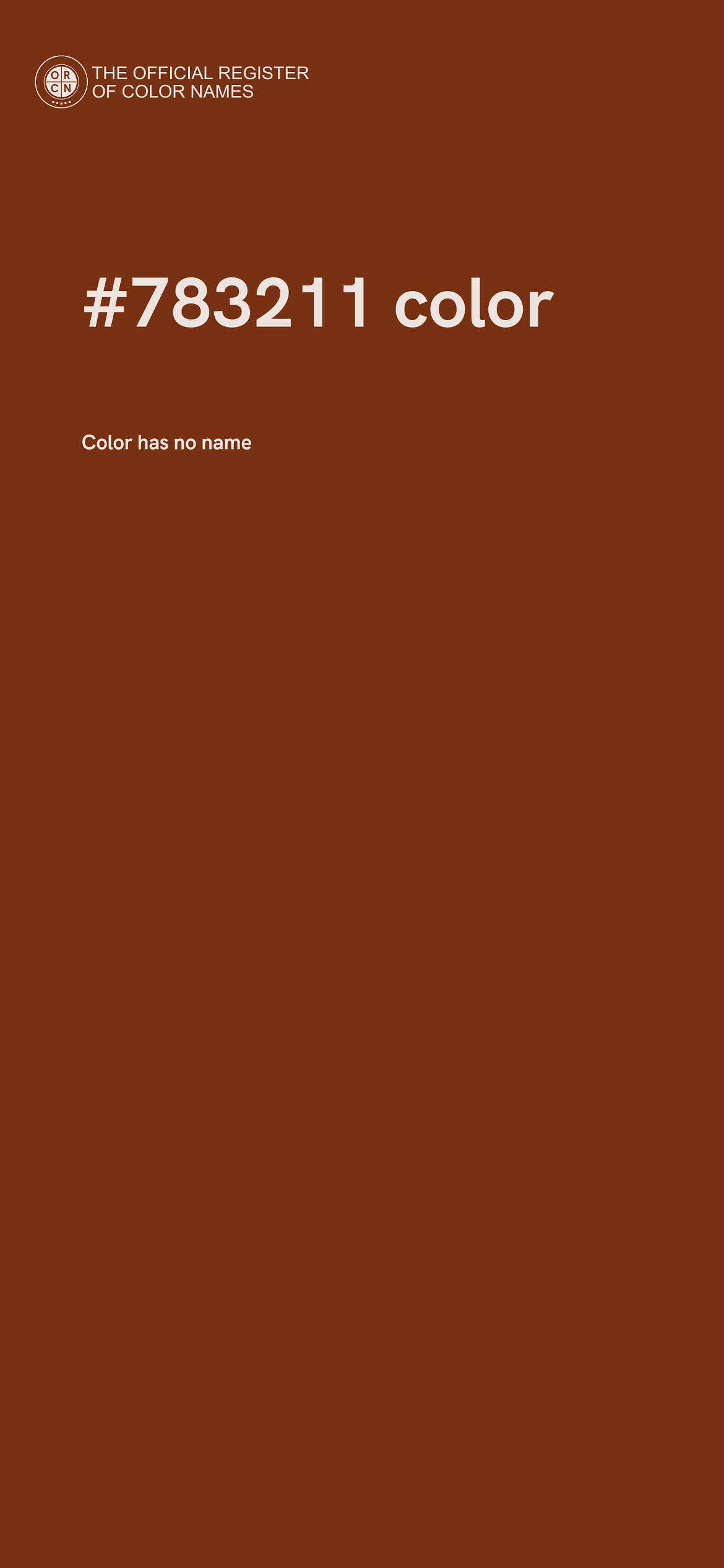 The digital color HEX #783211 belongs to the Orange Color Family featuring High Saturation (Saturation Family) and Neutral (Brightness Family).