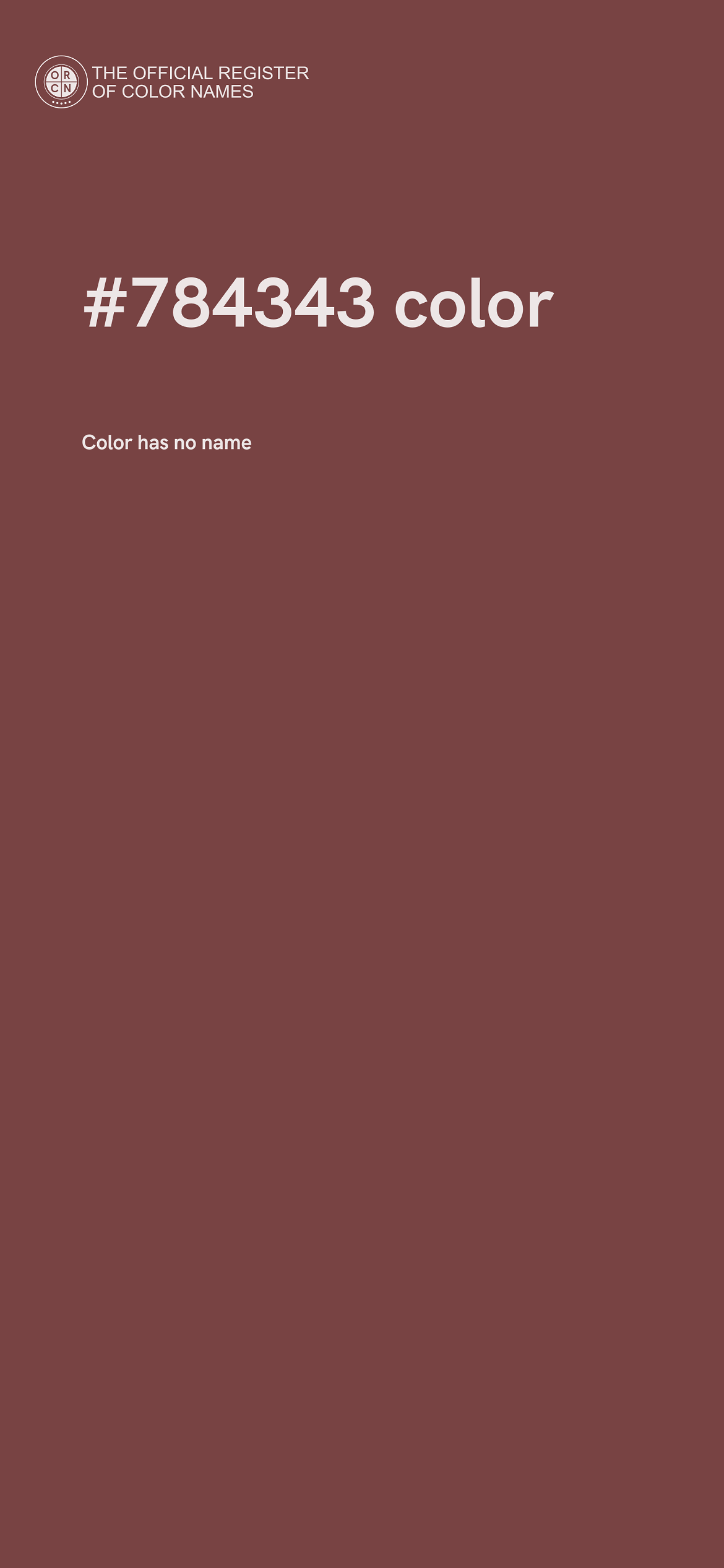 The digital color HEX #784343 belongs to the Red Color Family featuring Mild Saturation (Saturation Family) and Neutral (Brightness Family).