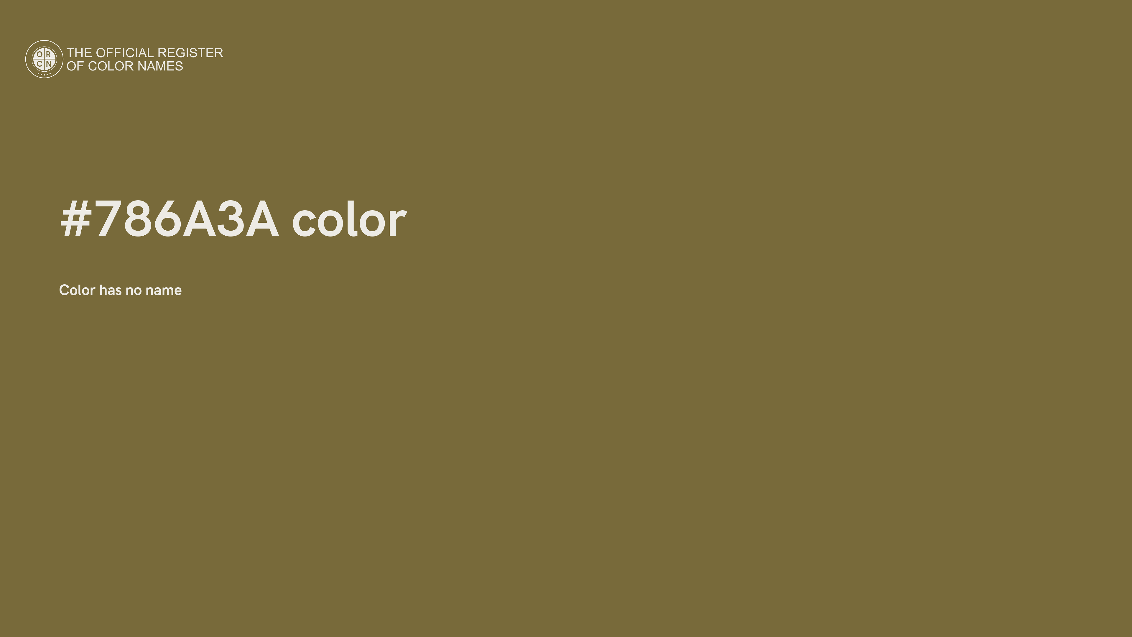 The digital color HEX #786A3A belongs to the Yellow Color Family featuring Mild Saturation (Saturation Family) and Neutral (Brightness Family).