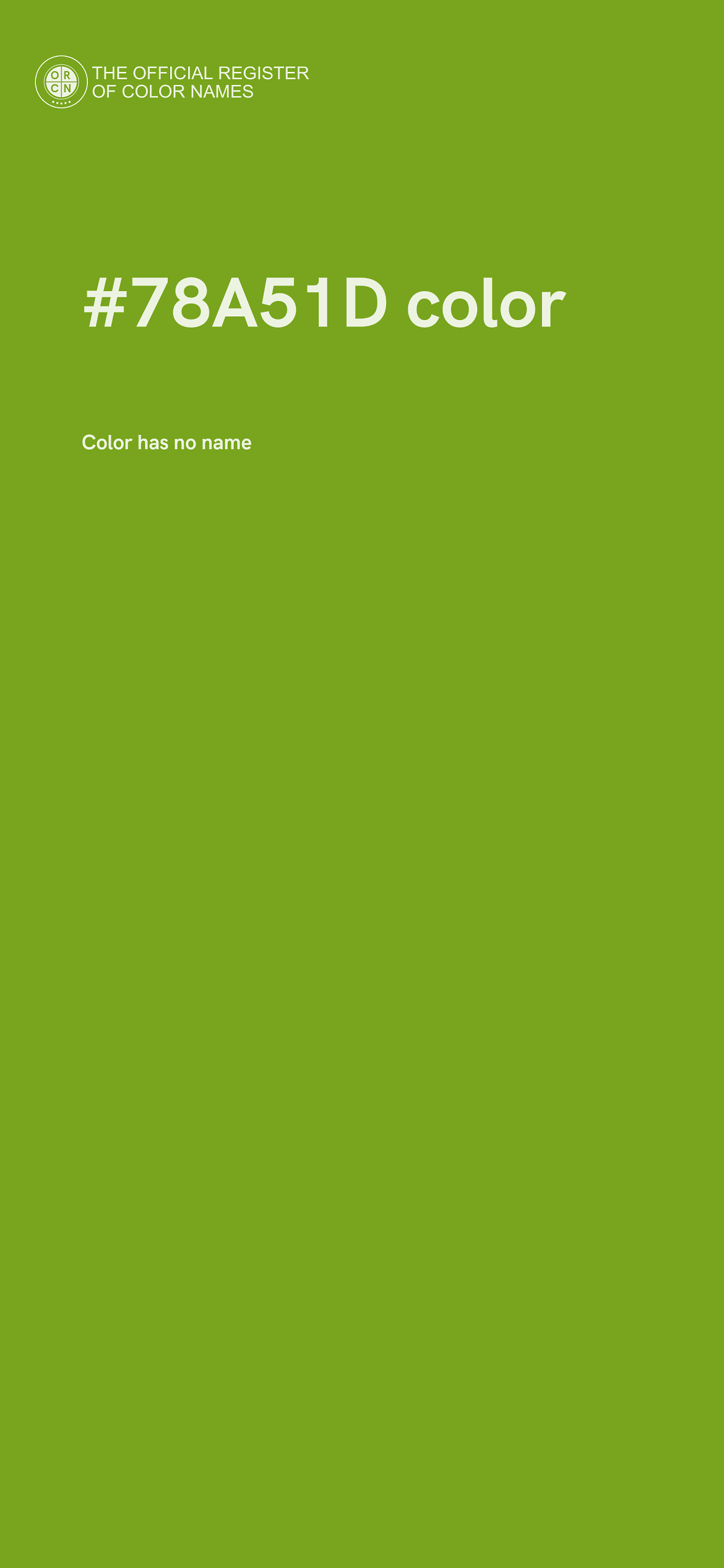 The digital color HEX #78A51D belongs to the Chartreuse Color Family featuring High Saturation (Saturation Family) and Neutral (Brightness Family).