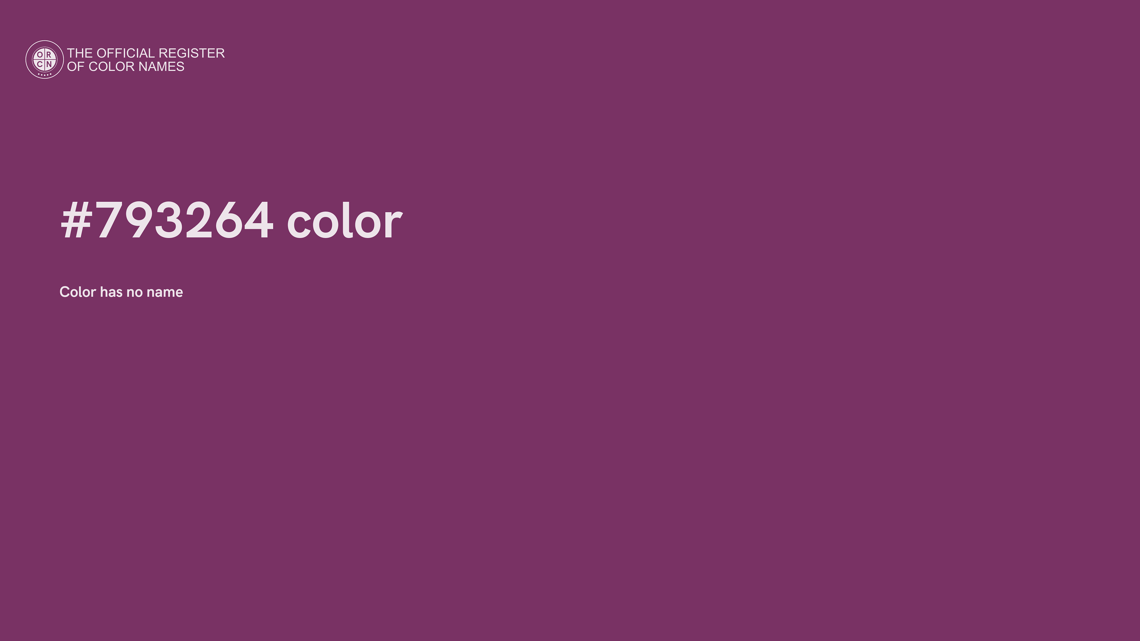 The digital color HEX #793264 belongs to the Rose Color Family featuring Moderate Saturation (Saturation Family) and Neutral (Brightness Family).