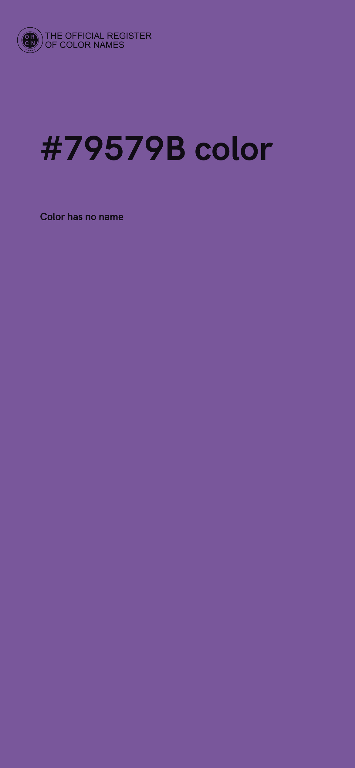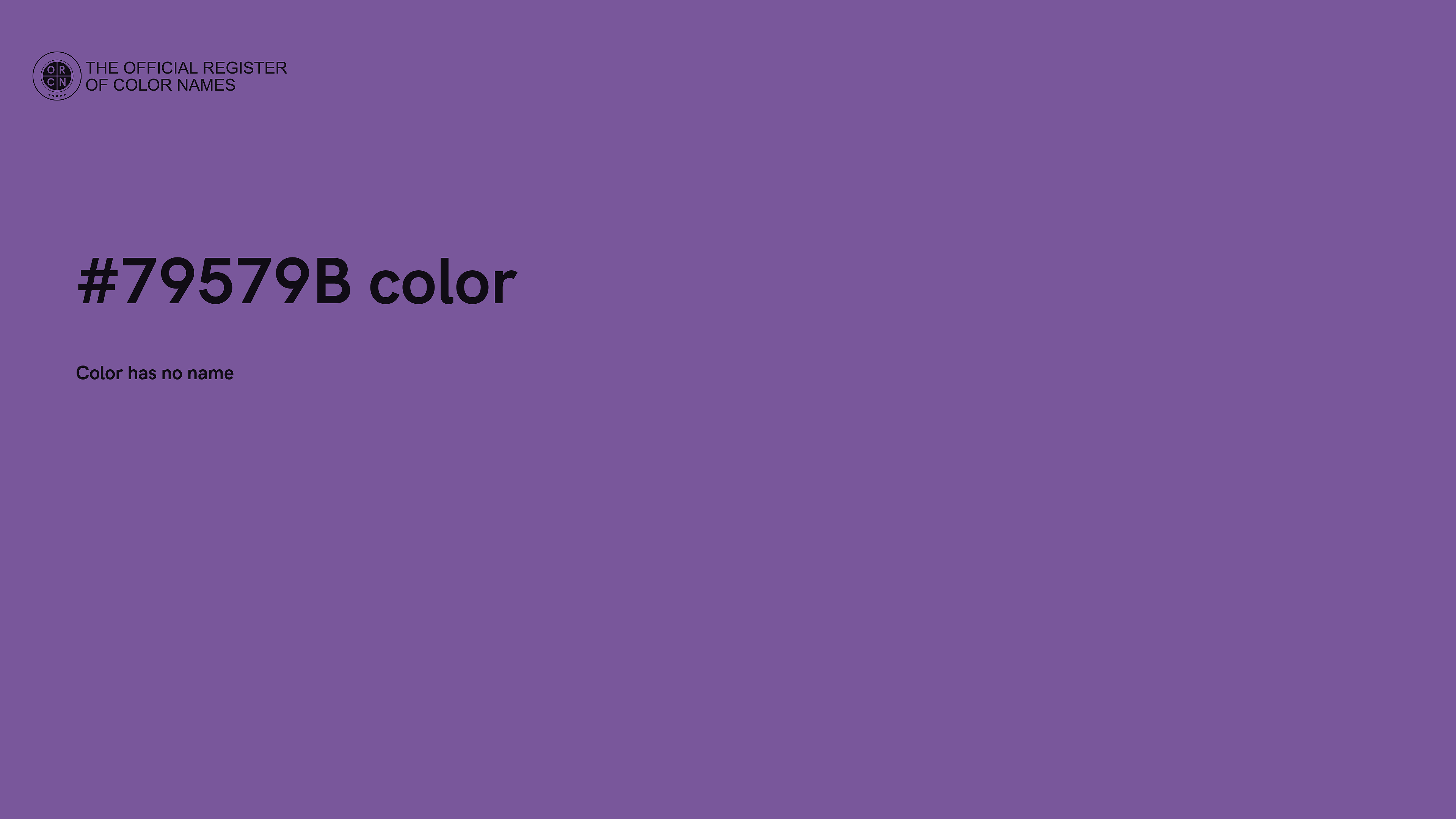 For printing in non digital world, #79579B is represented in CMYK as 13 Cyan, 27 Magenta, 0 Yellow, and 39 Black (Key) (C:13 M:27 Y:0 K:39).