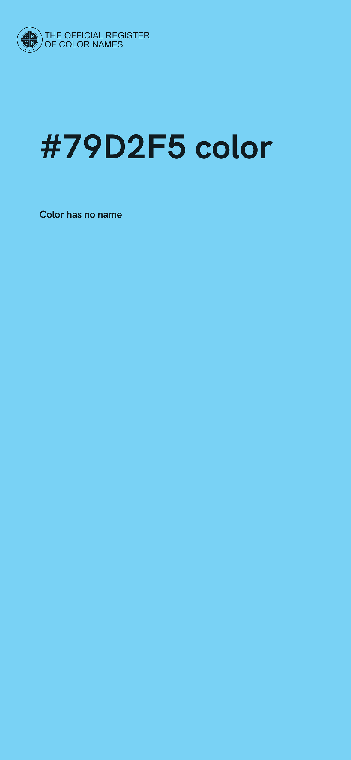 The digital color HEX #79D2F5 belongs to the Azure Color Family featuring Full Saturation (Saturation Family) and Very Light (Brightness Family).
