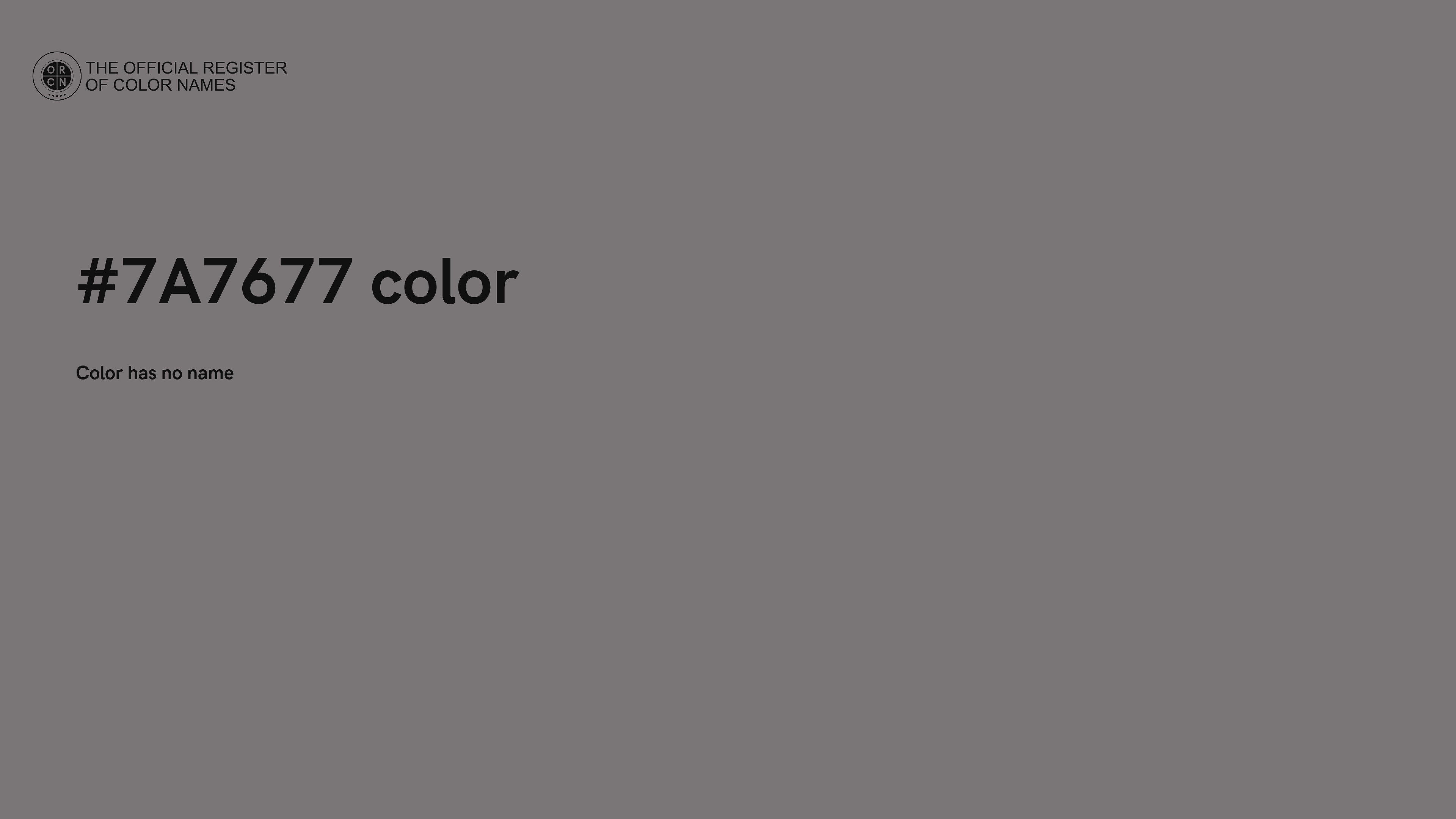 The digital color HEX #7A7677 belongs to the Red Color Family featuring Desaturated (Saturation Family) and Light (Brightness Family).