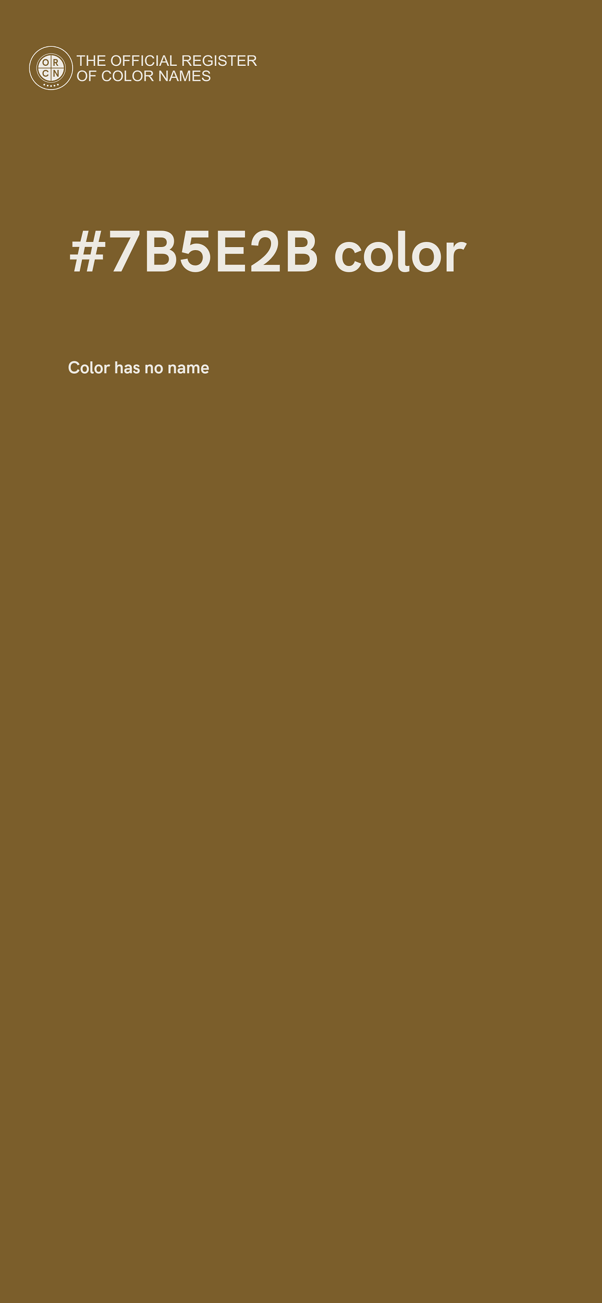 The digital color HEX #7B5E2B belongs to the Orange Color Family featuring Moderate Saturation (Saturation Family) and Neutral (Brightness Family).
