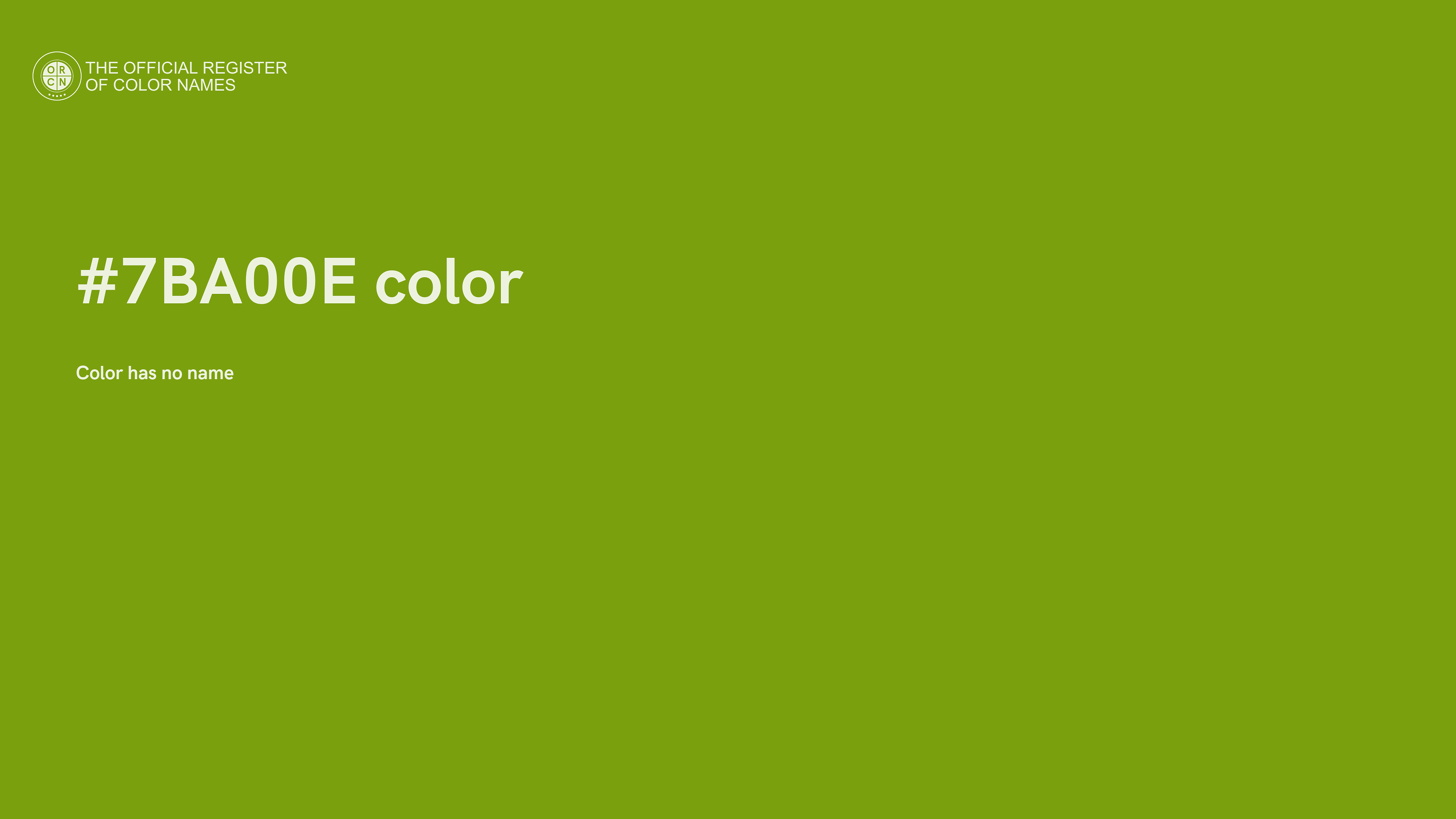 The digital color HEX #7BA00E belongs to the Chartreuse Color Family featuring High Saturation (Saturation Family) and Neutral (Brightness Family).