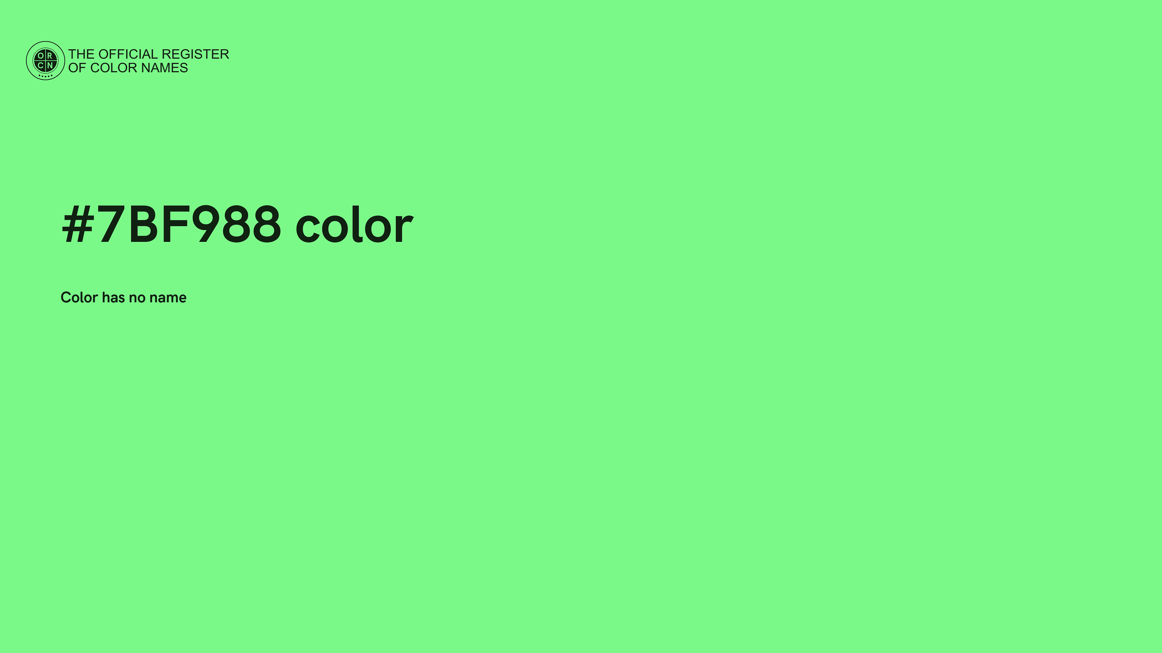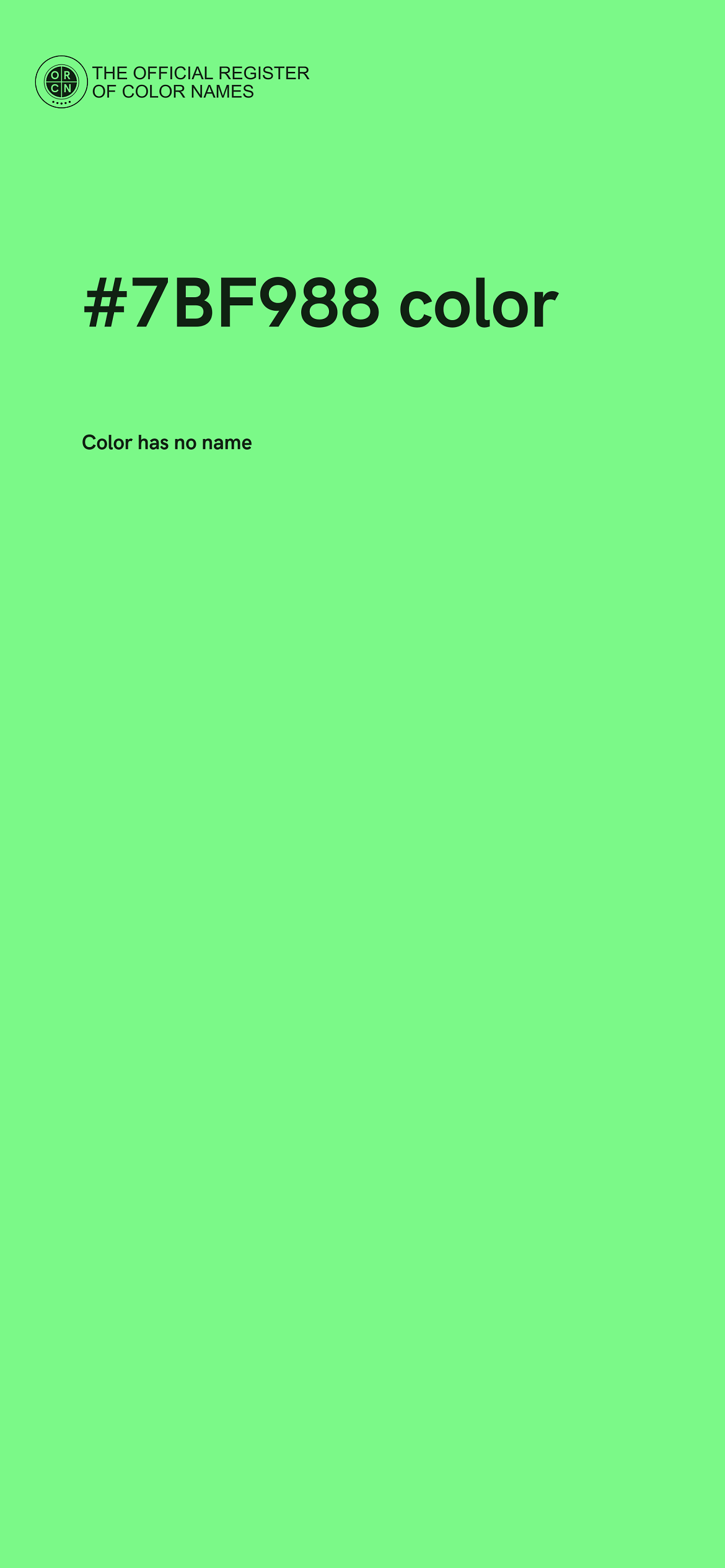 The digital color HEX #7BF988 belongs to the Green Color Family featuring Full Saturation (Saturation Family) and Very Light (Brightness Family).