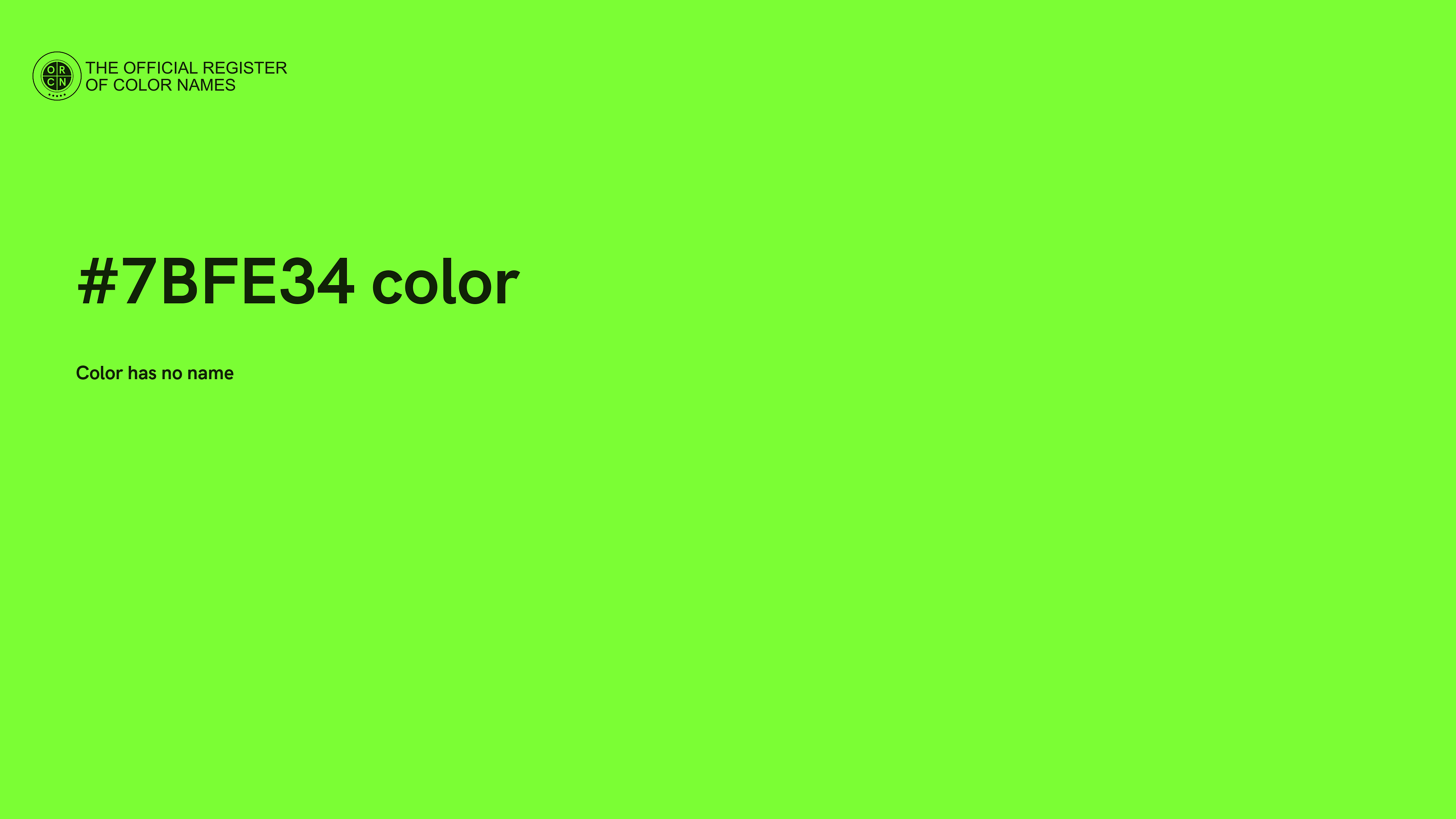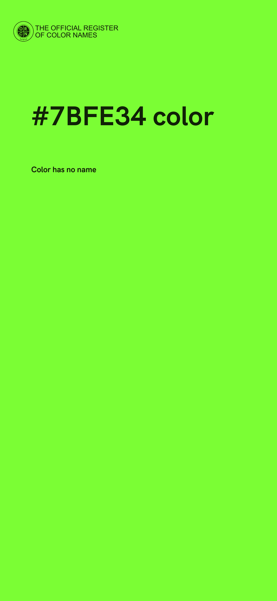 The digital color HEX #7BFE34 belongs to the Chartreuse Color Family featuring Full Saturation (Saturation Family) and Very Light (Brightness Family).
