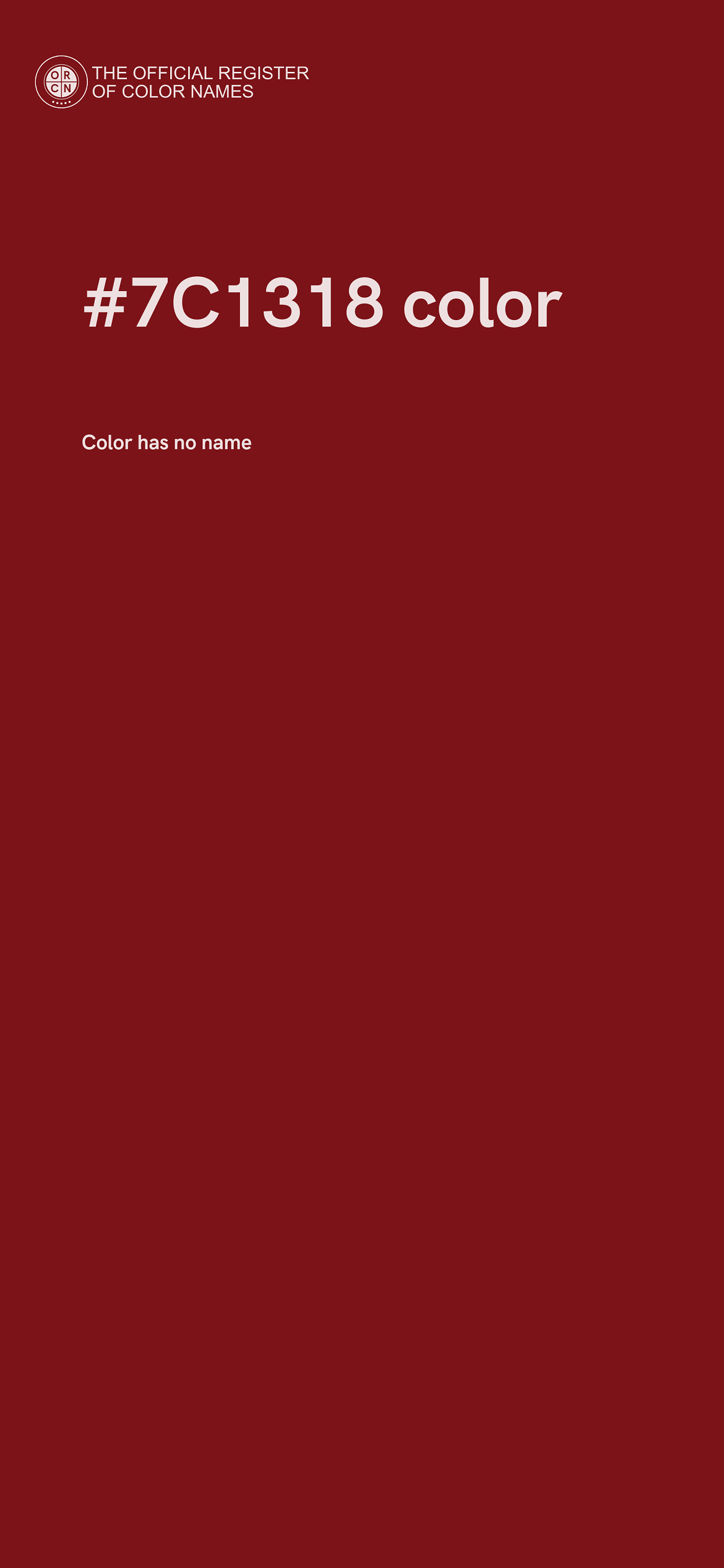 The digital color HEX #7C1318 belongs to the Red Color Family featuring High Saturation (Saturation Family) and Neutral (Brightness Family).
