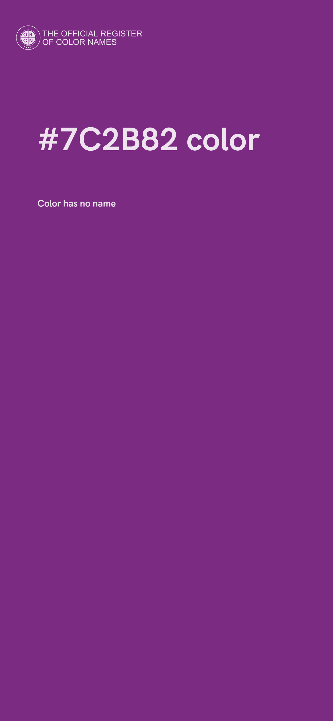 The digital color HEX #7C2B82 belongs to the Magenta Color Family featuring Moderate Saturation (Saturation Family) and Neutral (Brightness Family).