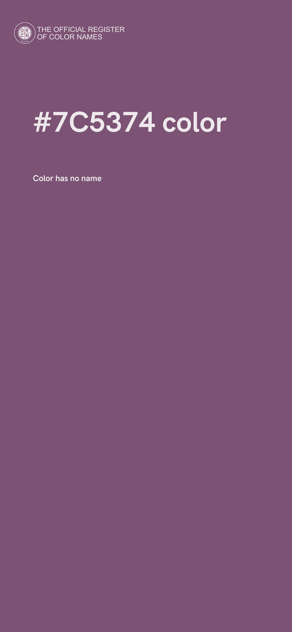 The digital color HEX #7C5374 belongs to the Magenta Color Family featuring Low Saturation (Saturation Family) and Light (Brightness Family).