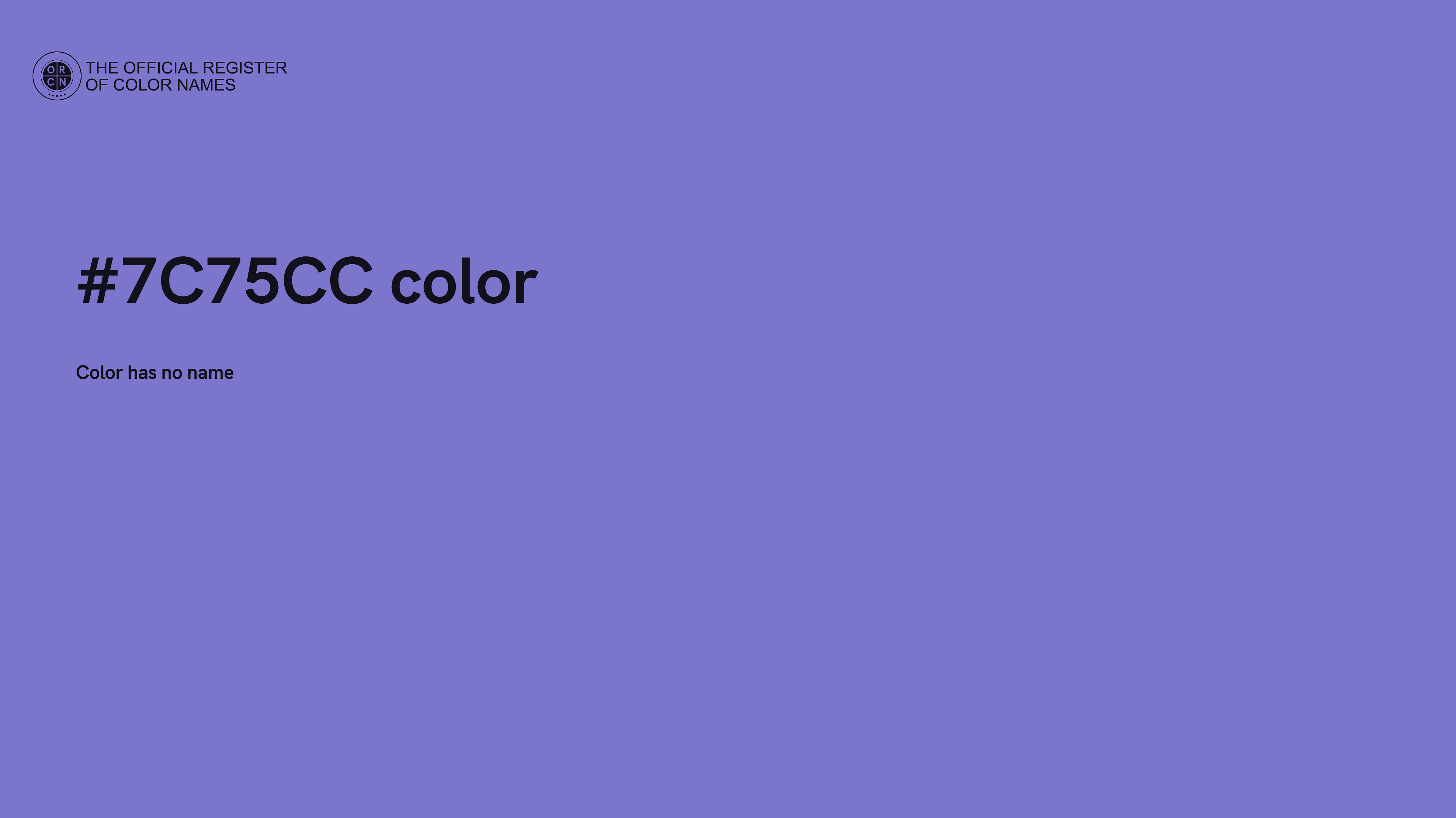 The digital color HEX #7C75CC belongs to the Blue Color Family featuring Moderate Saturation (Saturation Family) and Very Light (Brightness Family).