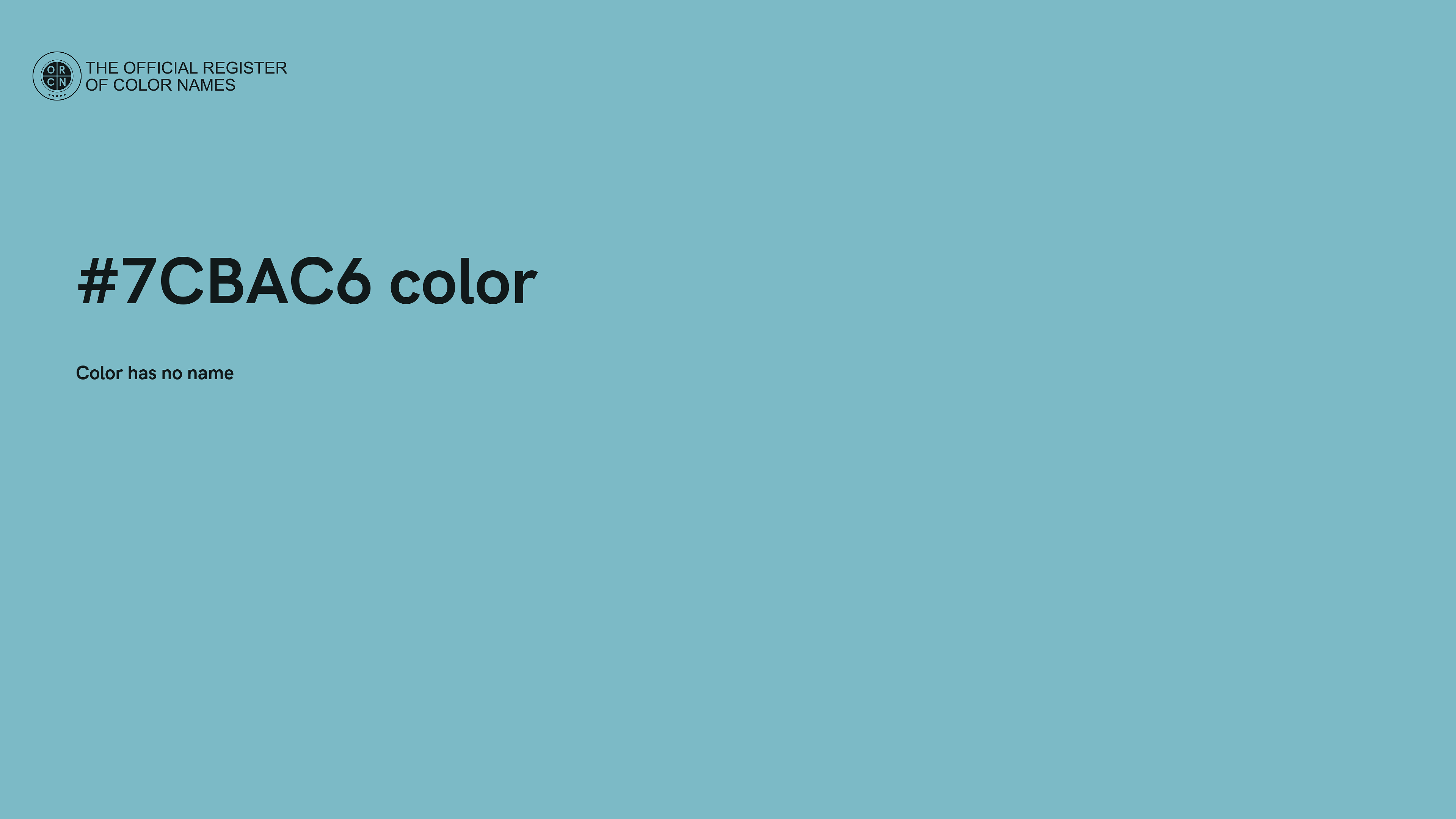 The digital color HEX #7CBAC6 belongs to the Cyan Color Family featuring Mild Saturation (Saturation Family) and Very Light (Brightness Family).