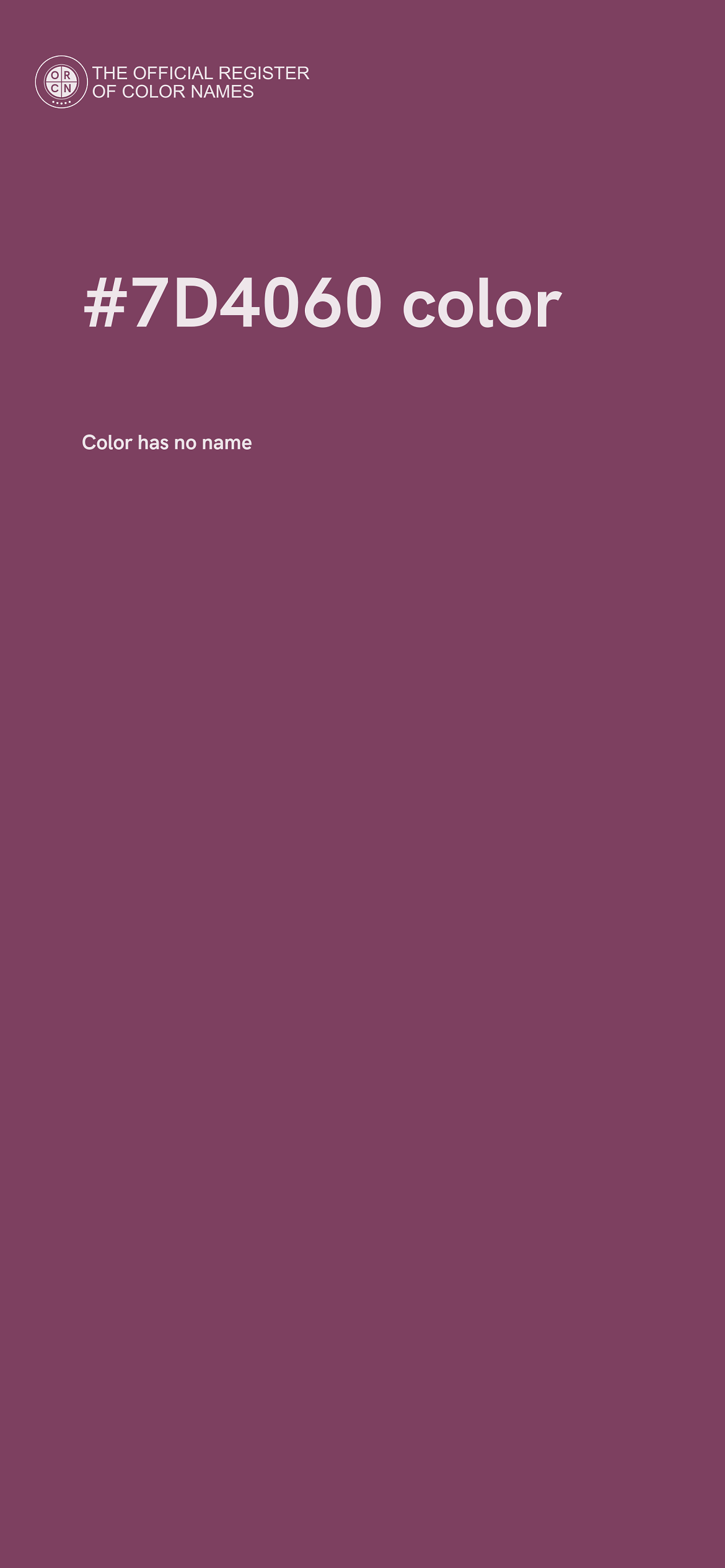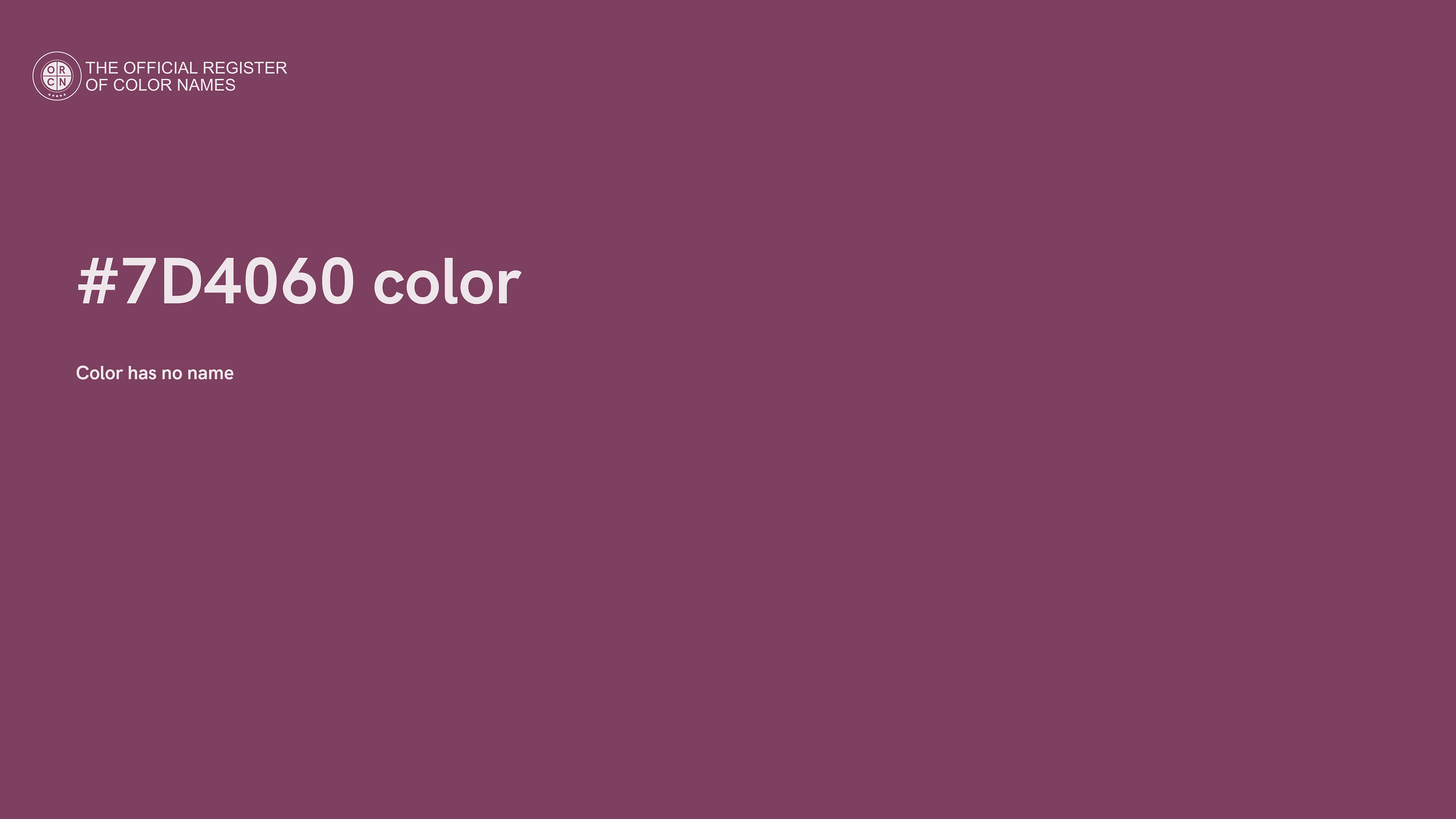 The digital color HEX #7D4060 belongs to the Rose Color Family featuring Mild Saturation (Saturation Family) and Neutral (Brightness Family).