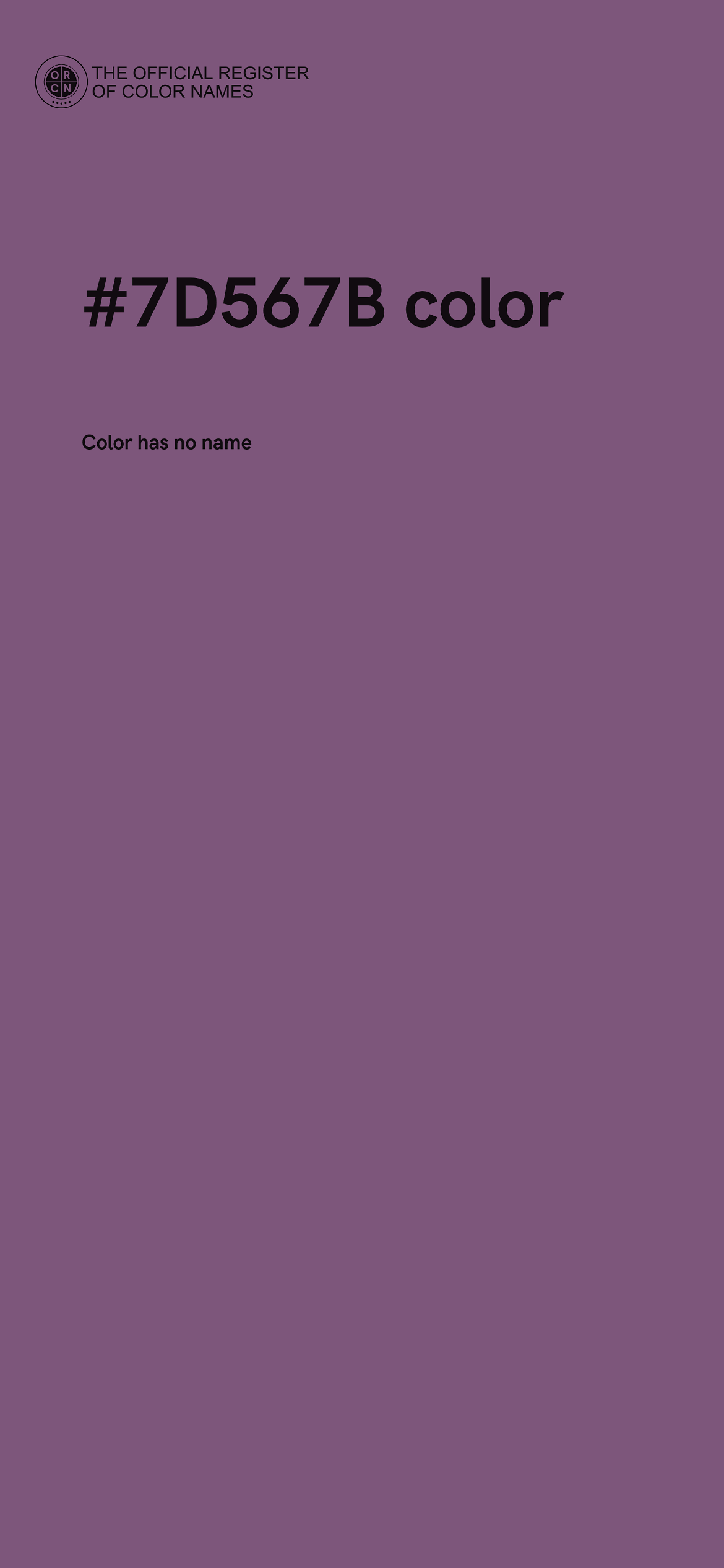 For printing in non digital world, #7D567B is represented in CMYK as 0 Cyan, 15 Magenta, 1 Yellow, and 51 Black (Key) (C:0 M:15 Y:1 K:51).