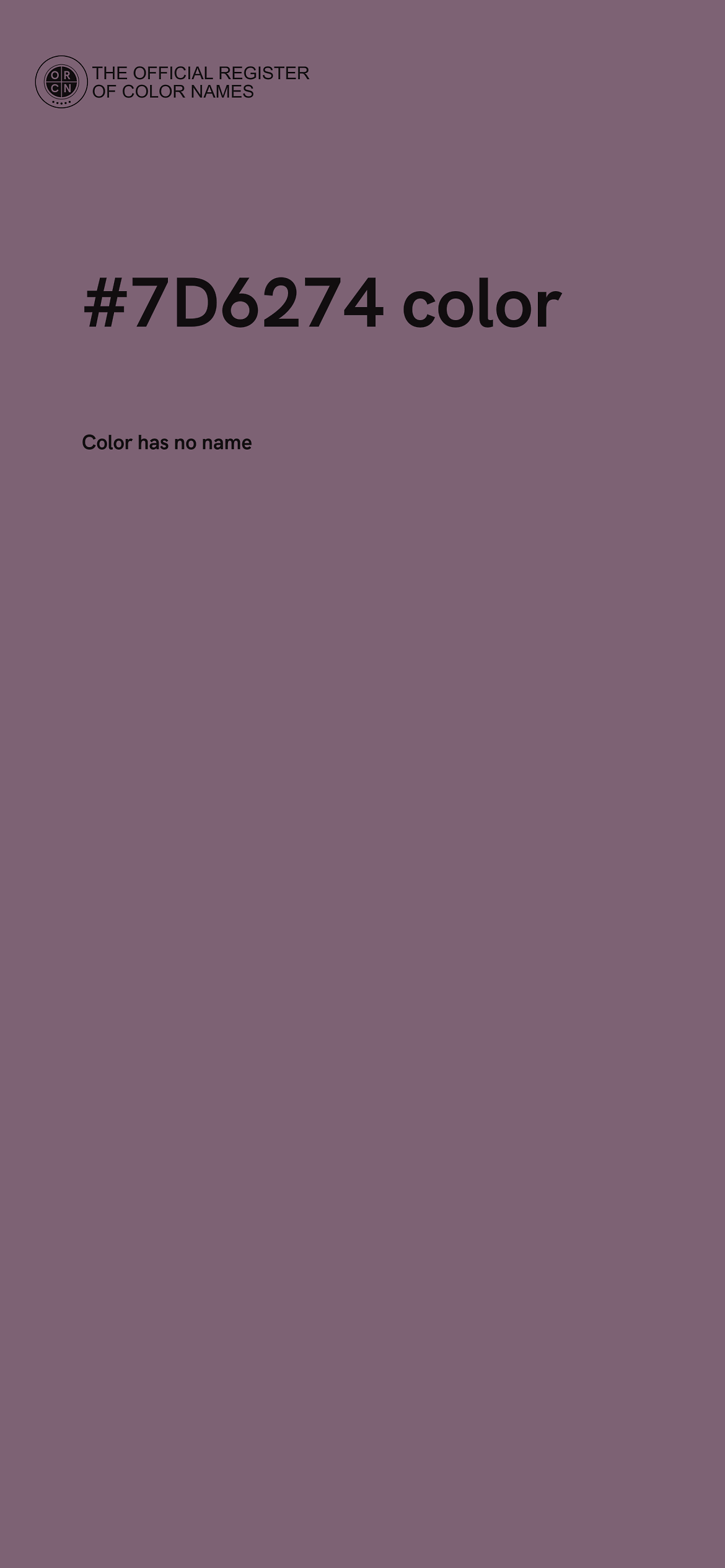 The digital color HEX #7D6274 belongs to the Rose Color Family featuring Low Saturation (Saturation Family) and Light (Brightness Family).
