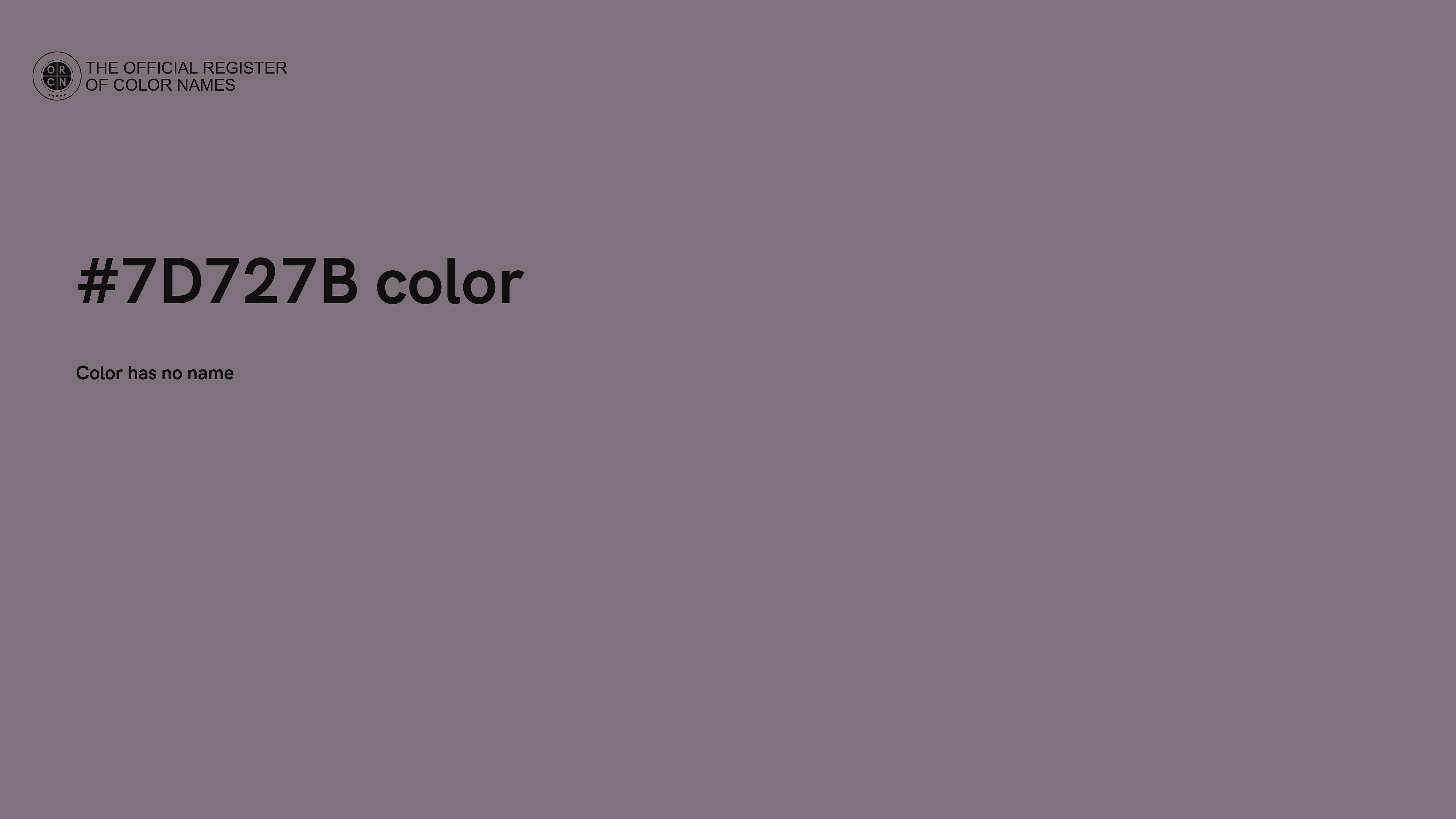 The digital color HEX #7D727B belongs to the Magenta Color Family featuring Desaturated (Saturation Family) and Light (Brightness Family).