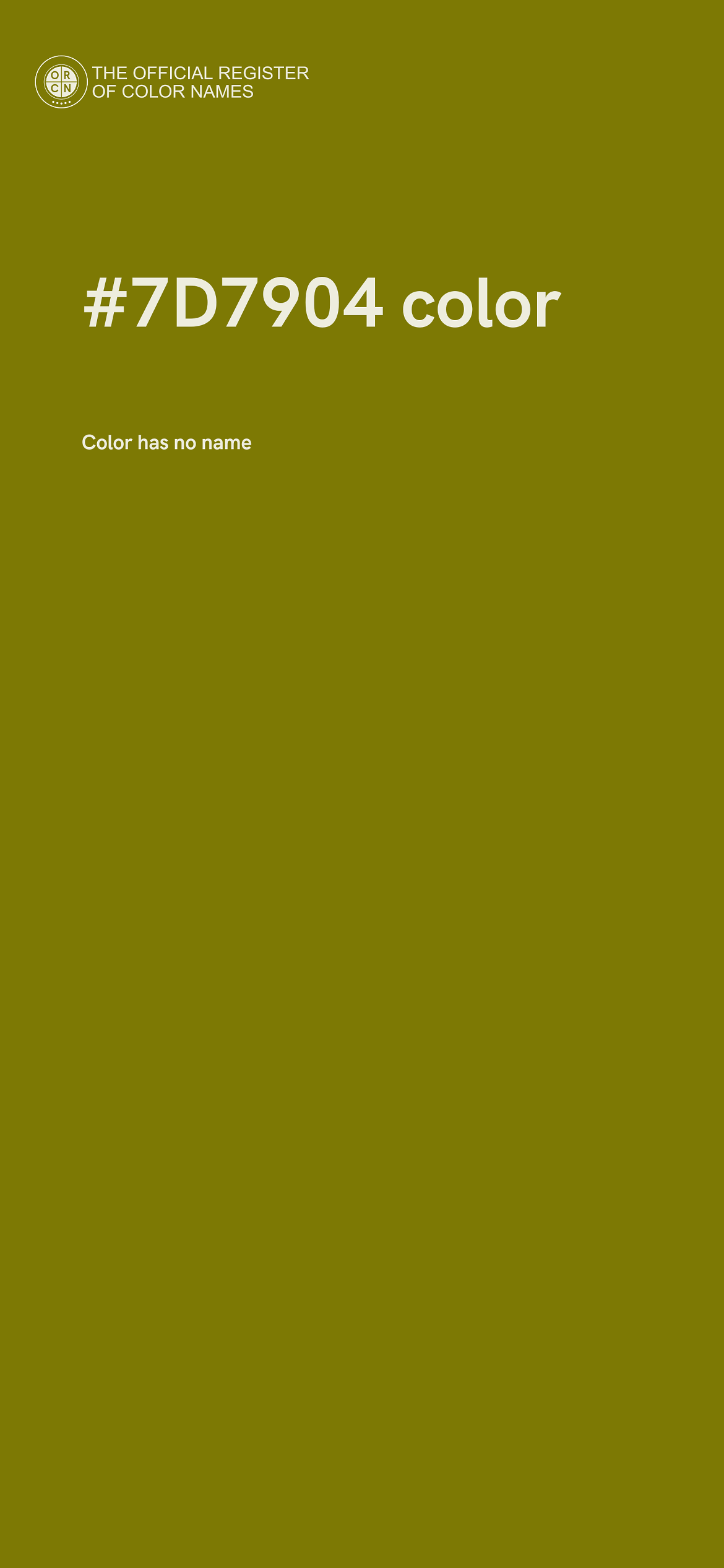 The digital color HEX #7D7904 belongs to the Yellow Color Family featuring Full Saturation (Saturation Family) and Neutral (Brightness Family).