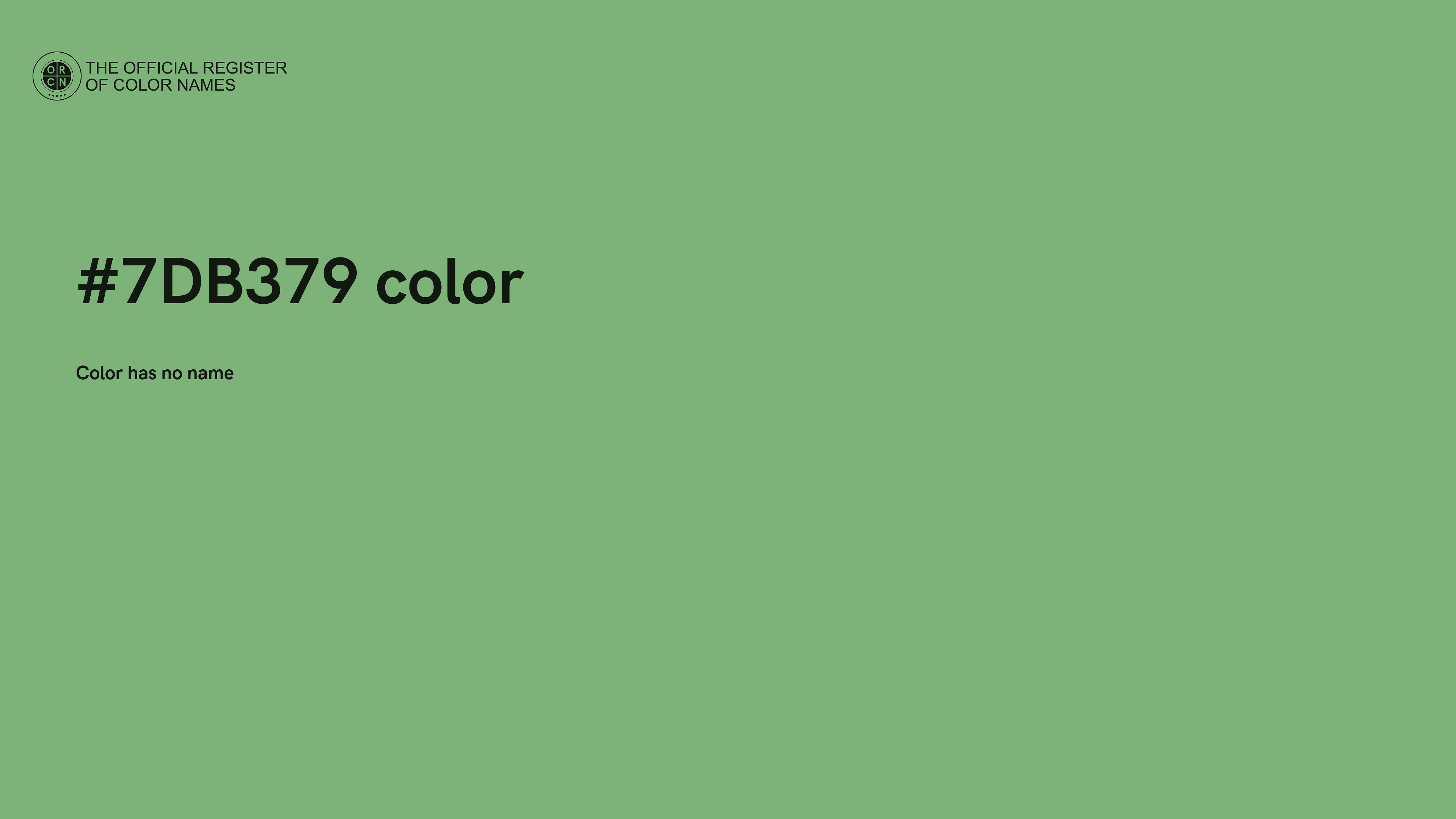The digital color HEX #7DB379 belongs to the Green Color Family featuring Mild Saturation (Saturation Family) and Light (Brightness Family).