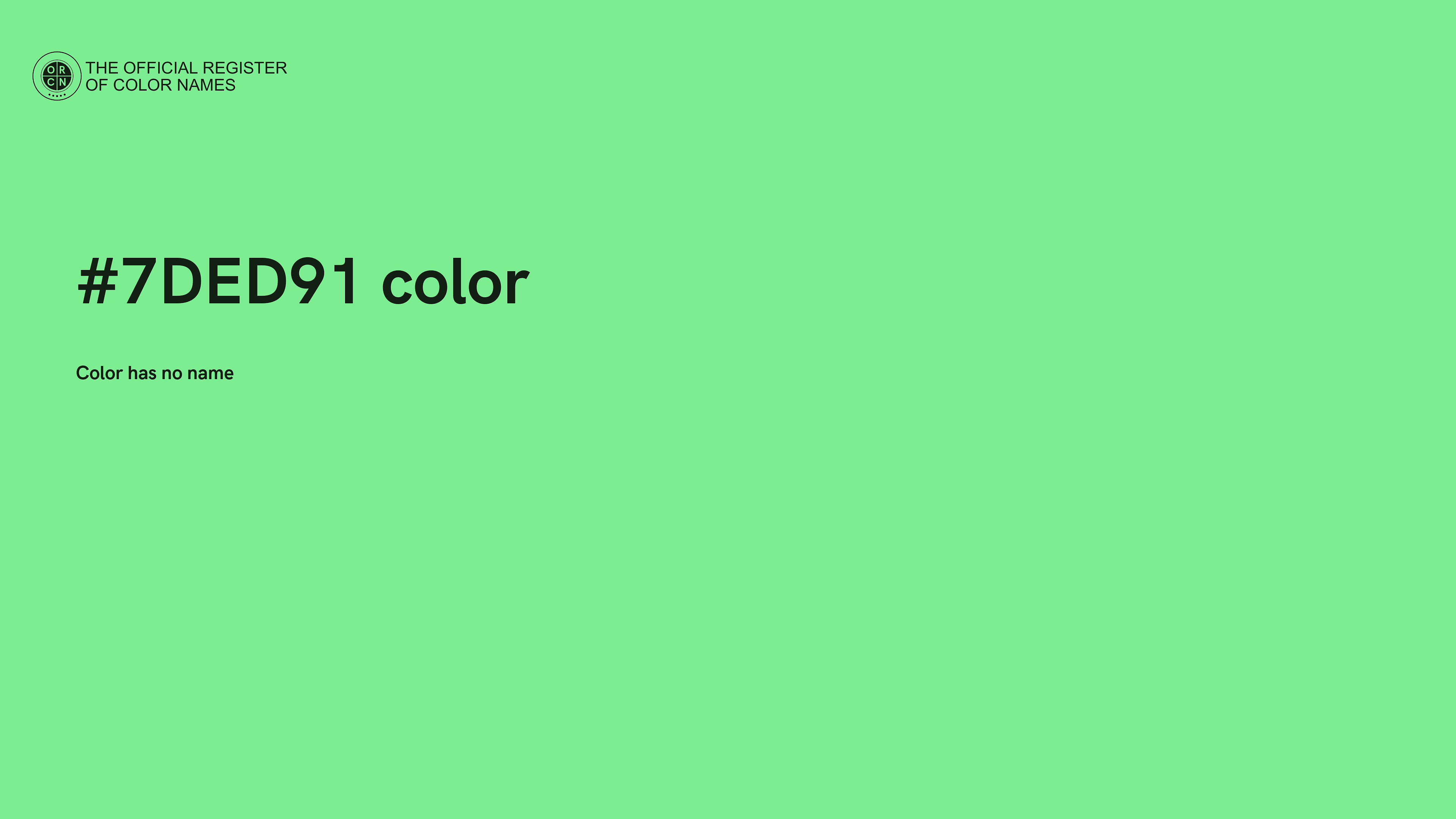 The digital color HEX #7DED91 belongs to the Green Color Family featuring High Saturation (Saturation Family) and Very Light (Brightness Family).