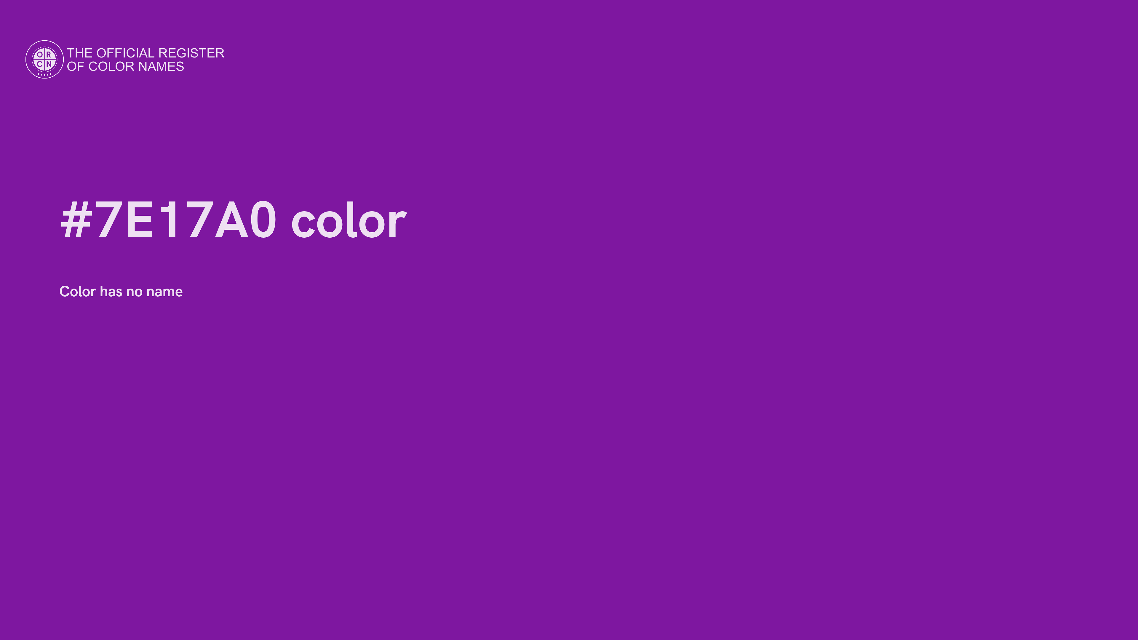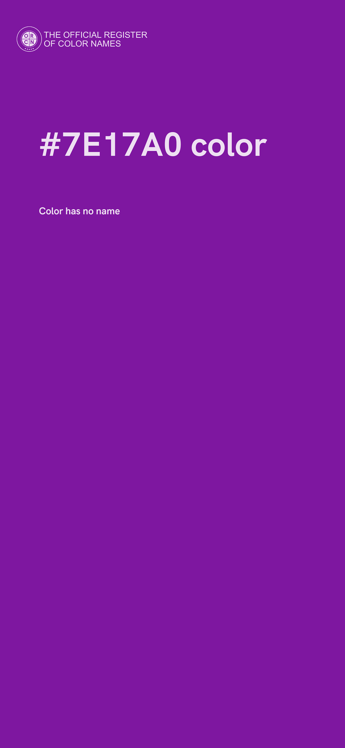 The digital color HEX #7E17A0 belongs to the Magenta Color Family featuring High Saturation (Saturation Family) and Neutral (Brightness Family).