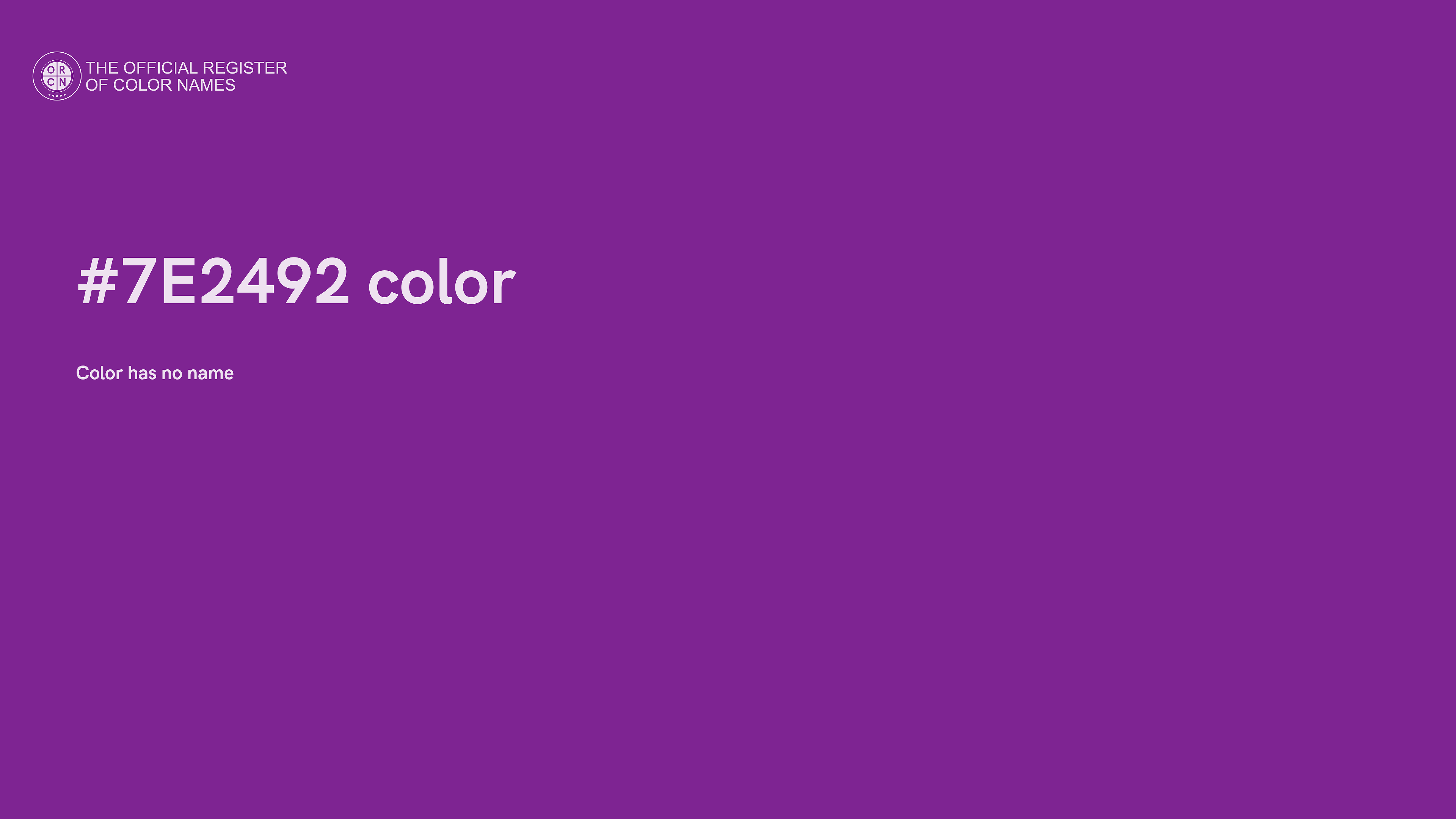 The digital color HEX #7E2492 belongs to the Magenta Color Family featuring High Saturation (Saturation Family) and Neutral (Brightness Family).