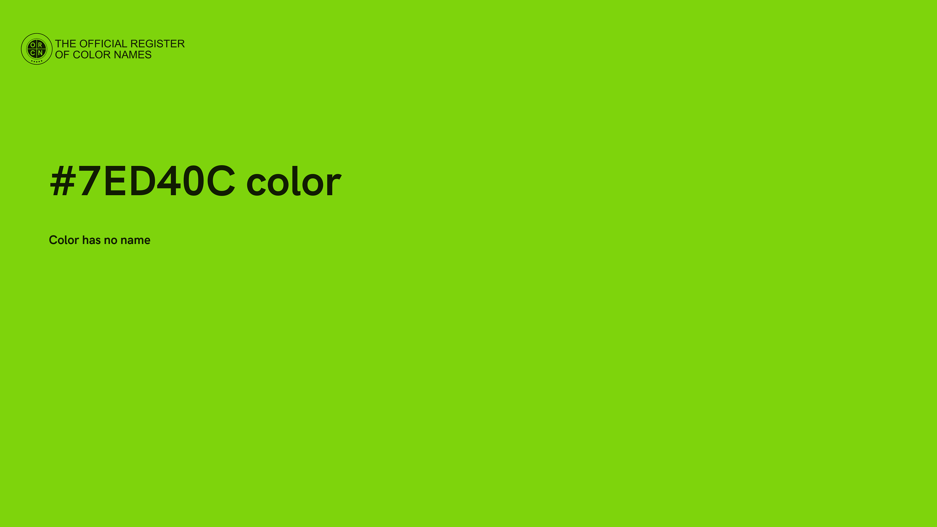 The digital color HEX #7ED40C belongs to the Chartreuse Color Family featuring Full Saturation (Saturation Family) and Light (Brightness Family).