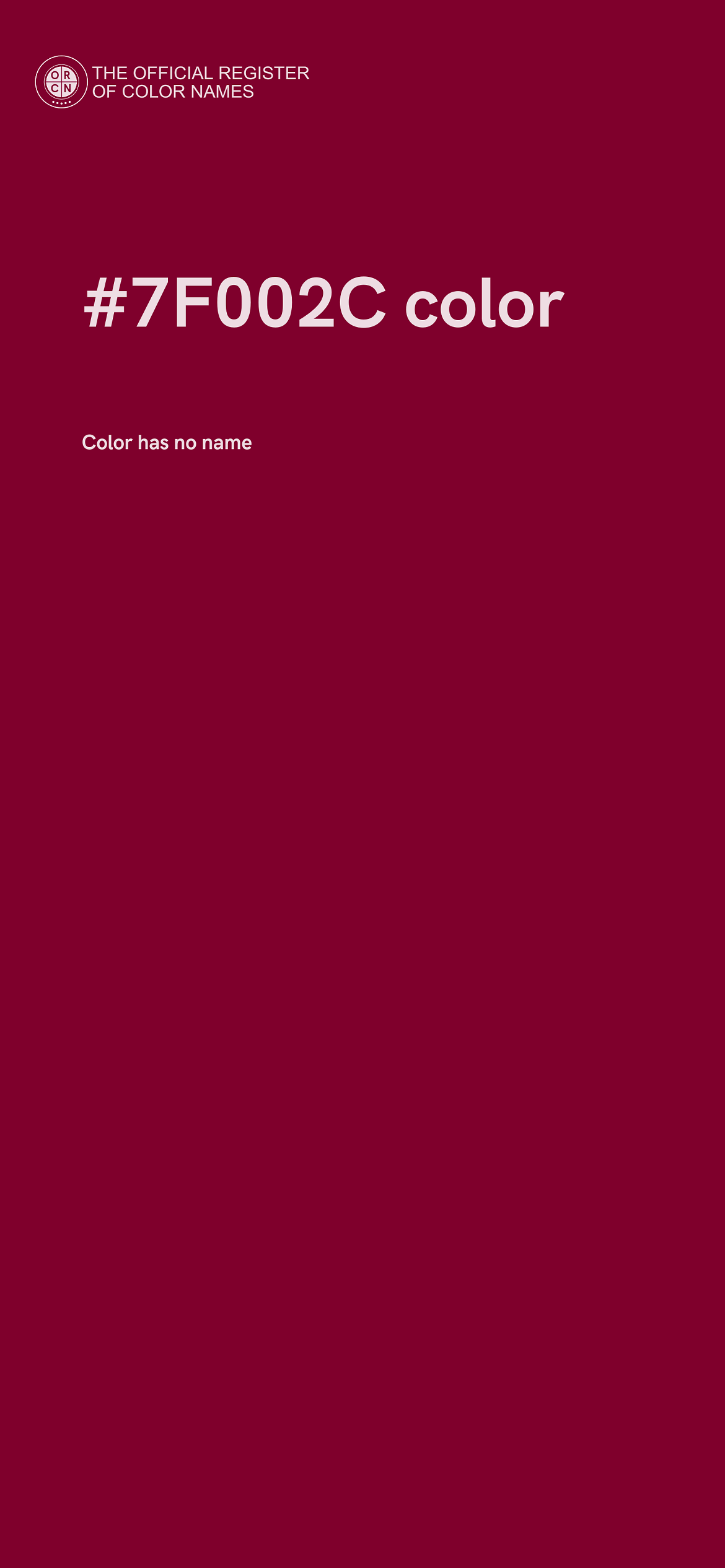 The digital color HEX #7F002C belongs to the Rose Color Family featuring Full Saturation (Saturation Family) and Neutral (Brightness Family).