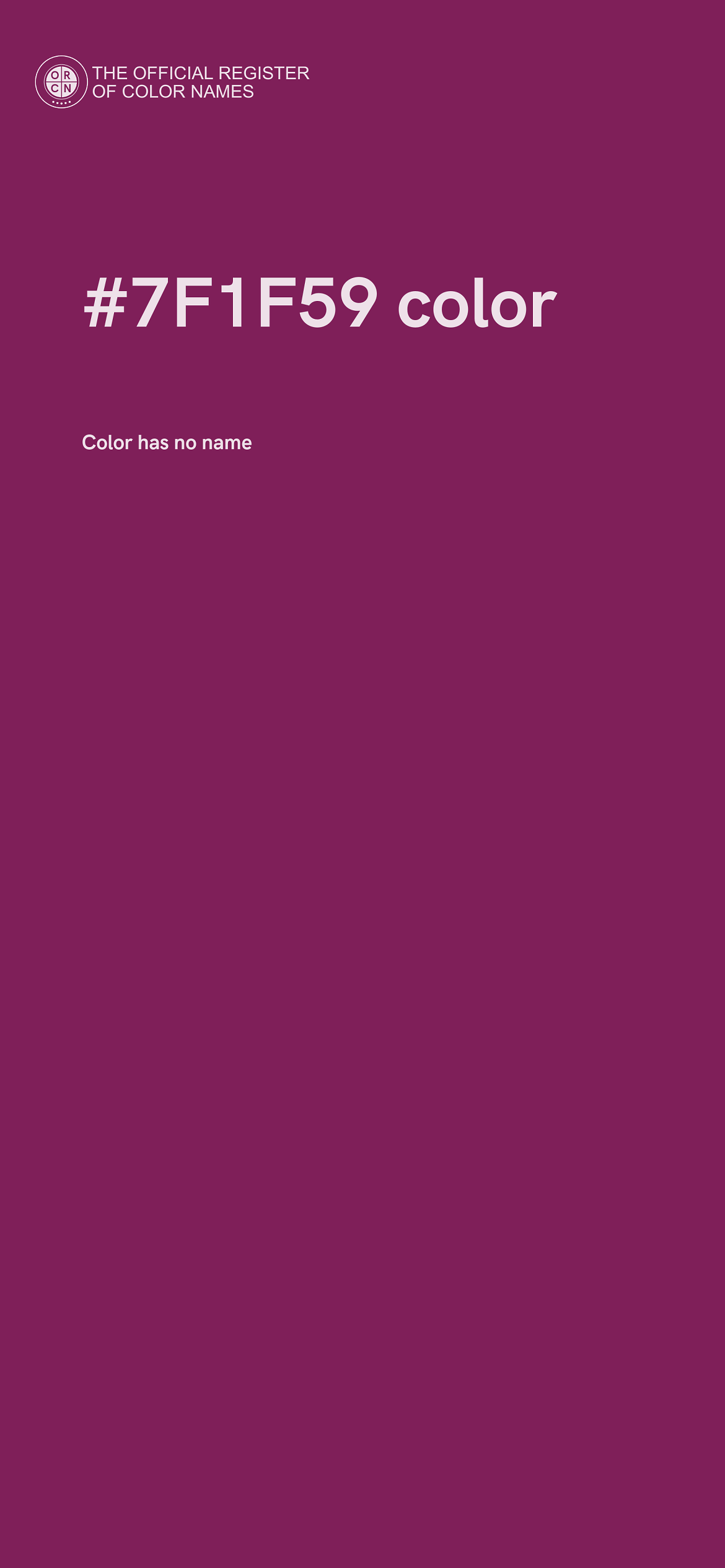 The digital color HEX #7F1F59 belongs to the Rose Color Family featuring High Saturation (Saturation Family) and Neutral (Brightness Family).