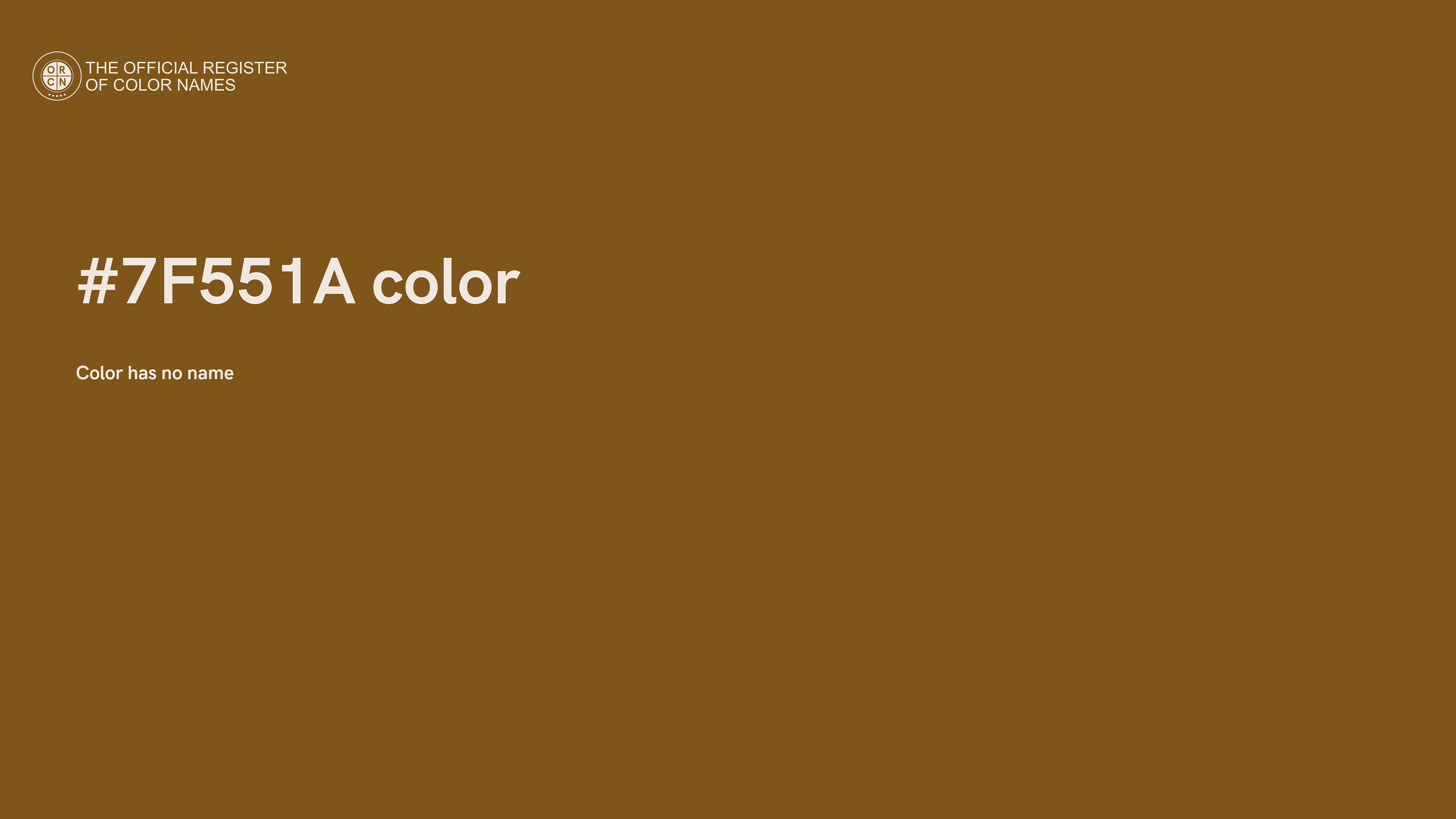 For printing in non digital world, #7F551A is represented in CMYK as 0 Cyan, 16 Magenta, 40 Yellow, and 50 Black (Key) (C:0 M:16 Y:40 K:50).