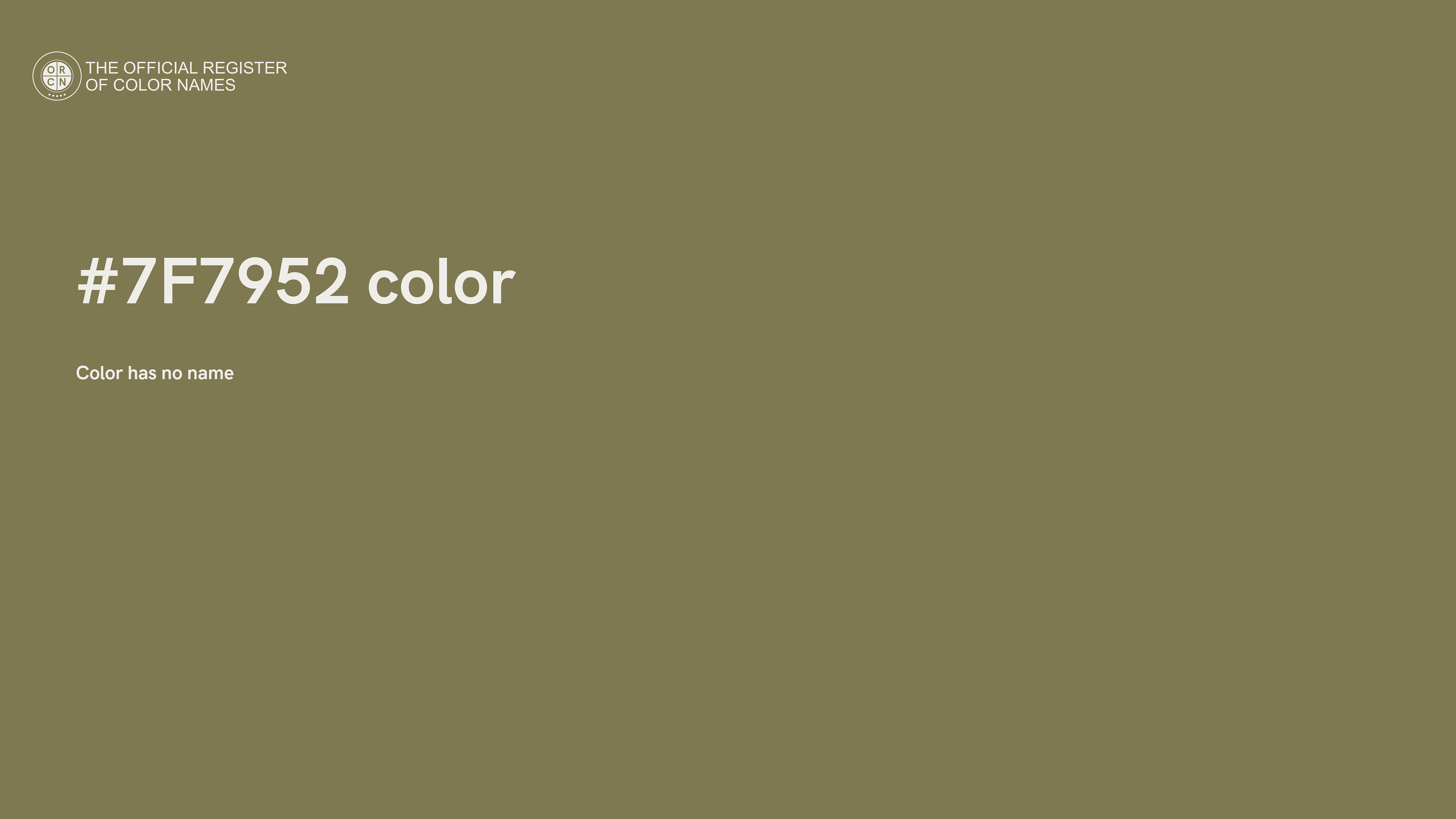 For printing in non digital world, #7F7952 is represented in CMYK as 0 Cyan, 2 Magenta, 18 Yellow, and 50 Black (Key) (C:0 M:2 Y:18 K:50).