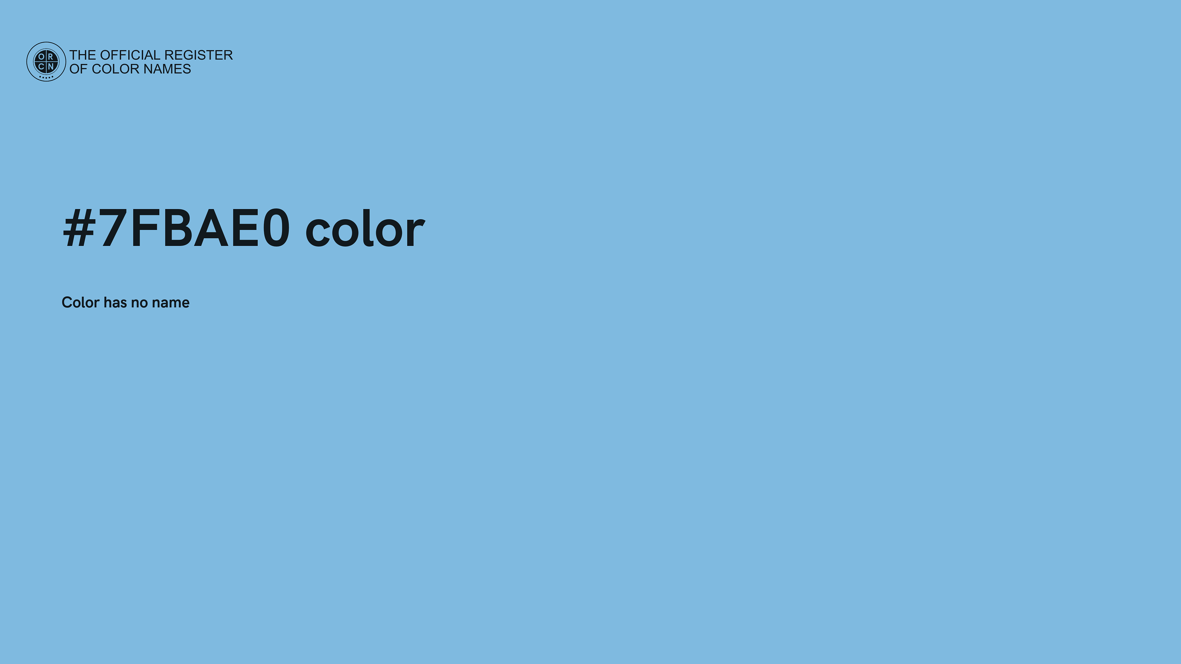 The digital color HEX #7FBAE0 belongs to the Azure Color Family featuring High Saturation (Saturation Family) and Very Light (Brightness Family).