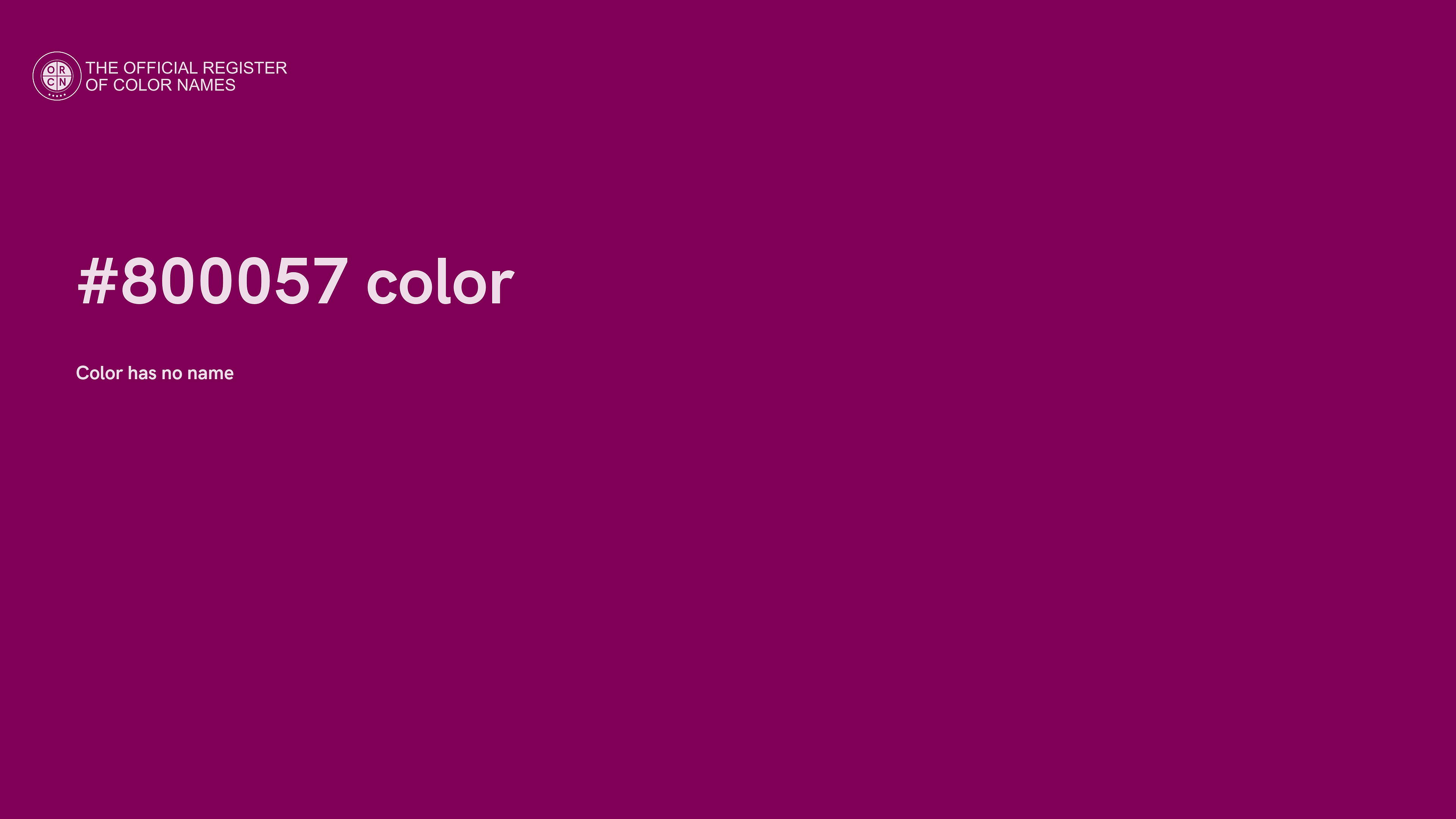 The digital color HEX #800057 belongs to the Rose Color Family featuring Full Saturation (Saturation Family) and Neutral (Brightness Family).