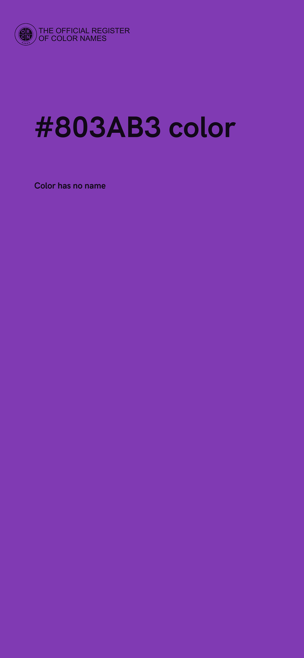 The digital color HEX #803AB3 belongs to the Violet Color Family featuring Moderate Saturation (Saturation Family) and Light (Brightness Family).