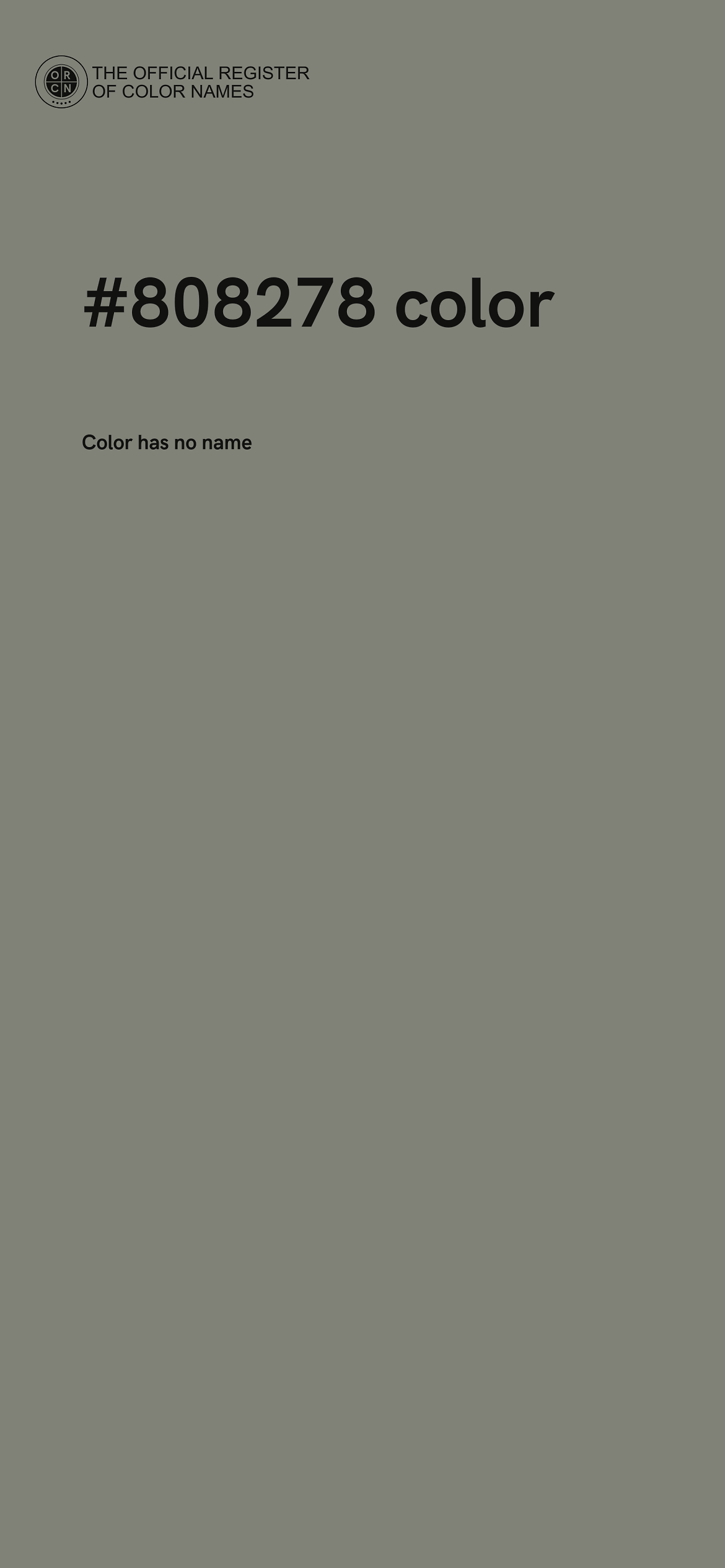 For printing in non digital world, #808278 is represented in CMYK as 1 Cyan, 0 Magenta, 4 Yellow, and 49 Black (Key) (C:1 M:0 Y:4 K:49).