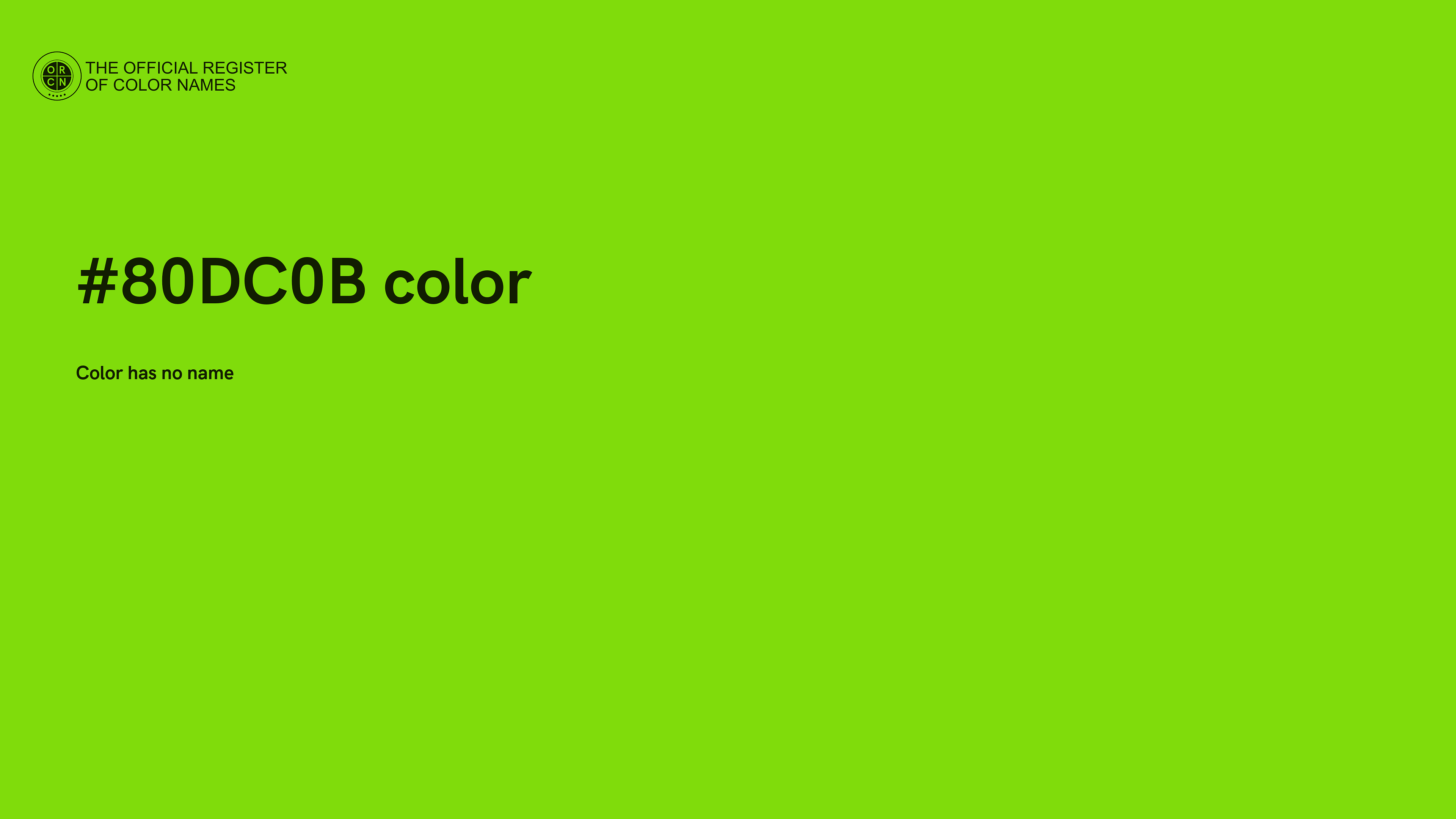 The digital color HEX #80DC0B belongs to the Chartreuse Color Family featuring Full Saturation (Saturation Family) and Light (Brightness Family).