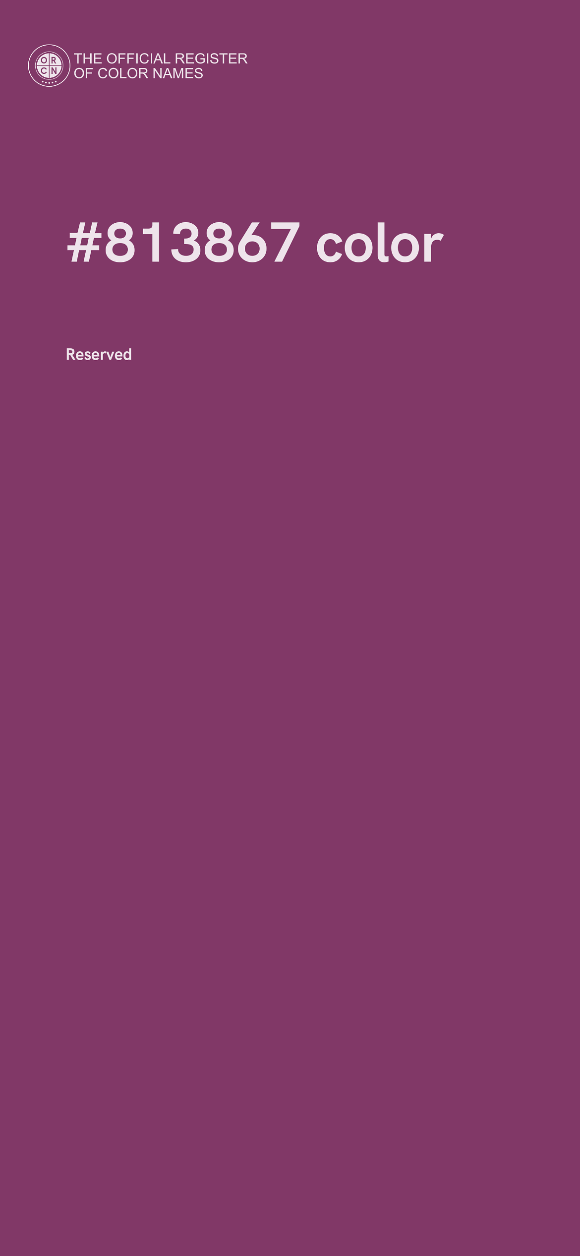 The digital color HEX #813867 belongs to the Rose Color Family featuring Mild Saturation (Saturation Family) and Neutral (Brightness Family).