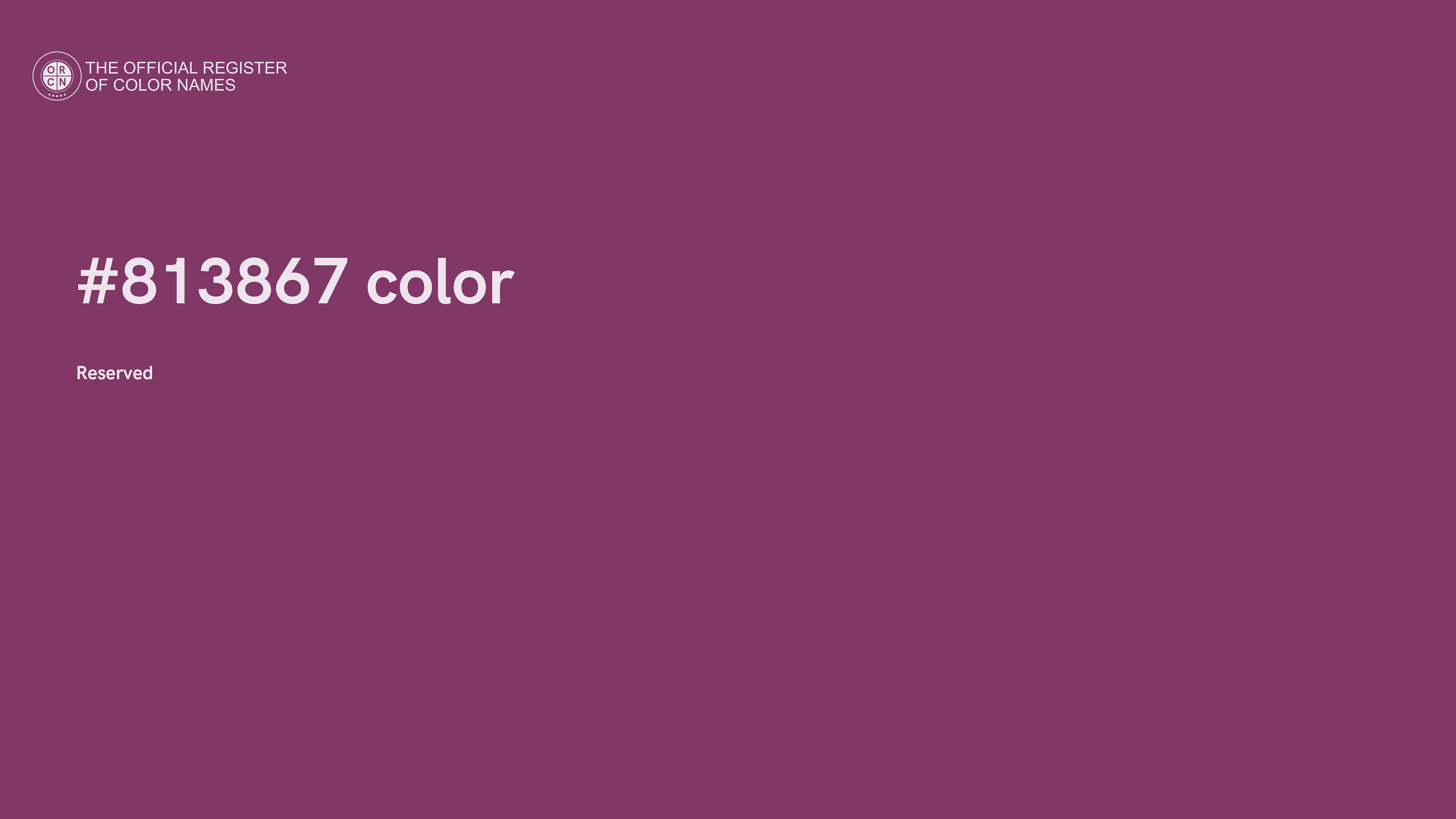 For printing in non digital world, #813867 is represented in CMYK as 0 Cyan, 29 Magenta, 10 Yellow, and 49 Black (Key) (C:0 M:29 Y:10 K:49).