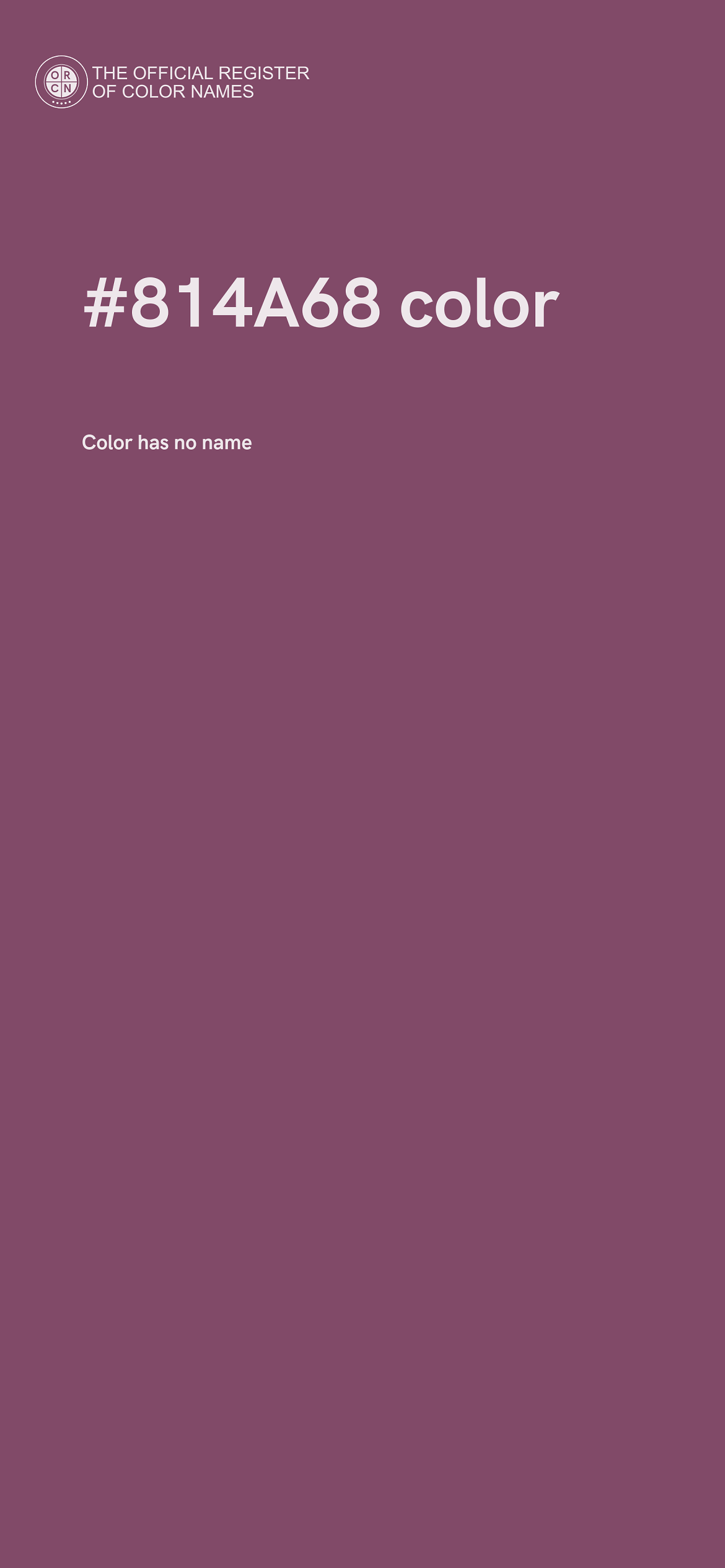 For printing in non digital world, #814A68 is represented in CMYK as 0 Cyan, 22 Magenta, 10 Yellow, and 49 Black (Key) (C:0 M:22 Y:10 K:49).