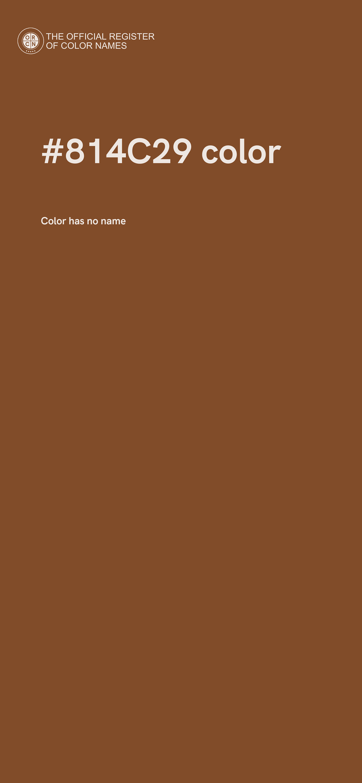 For printing in non digital world, #814C29 is represented in CMYK as 0 Cyan, 21 Magenta, 35 Yellow, and 49 Black (Key) (C:0 M:21 Y:35 K:49).