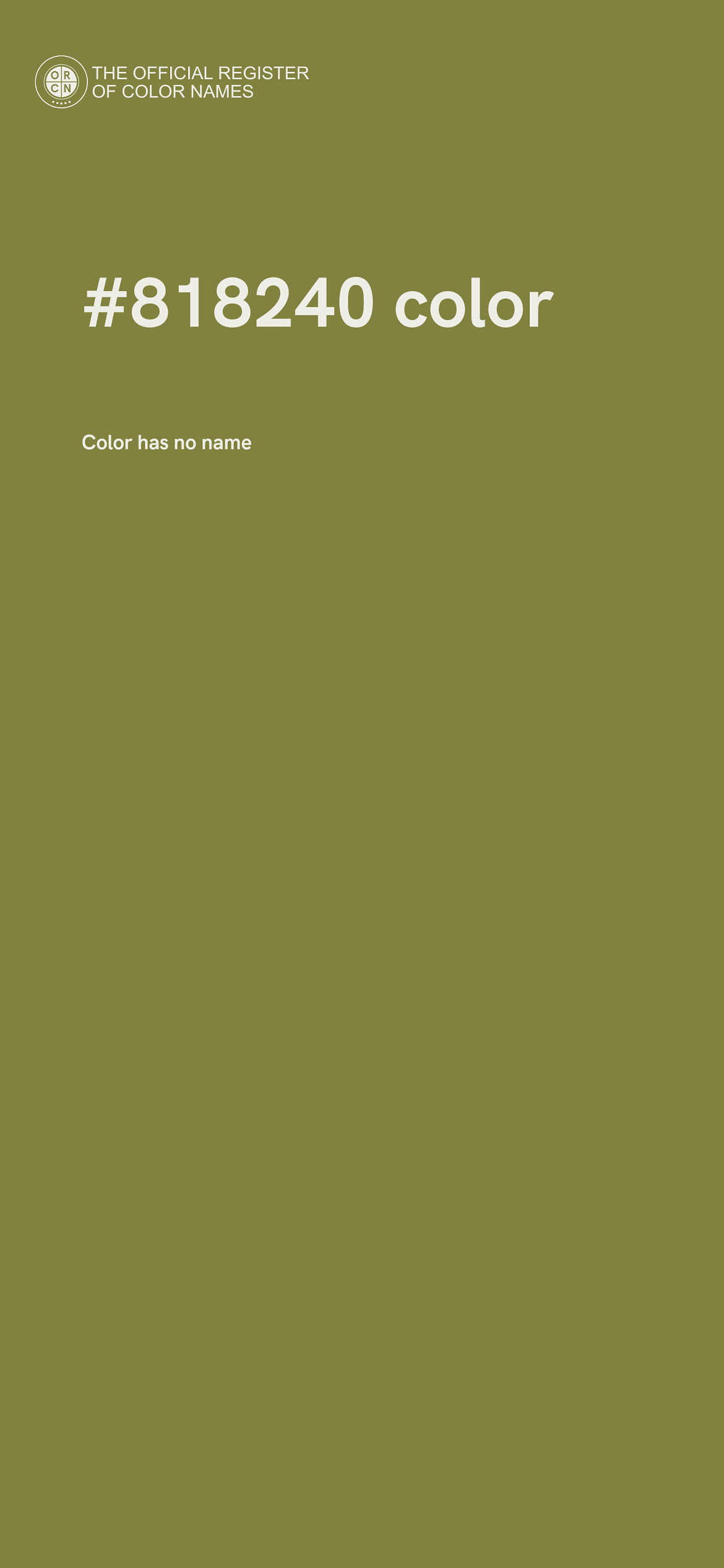 For printing in non digital world, #818240 is represented in CMYK as 0 Cyan, 0 Magenta, 26 Yellow, and 49 Black (Key) (C:0 M:0 Y:26 K:49).