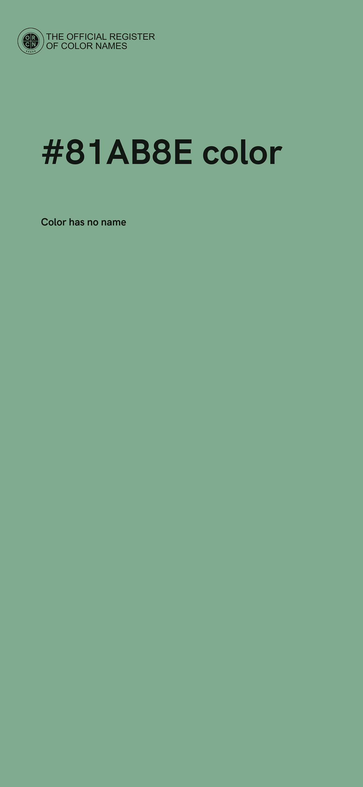 The digital color HEX #81AB8E belongs to the Spring Green Color Family featuring Low Saturation (Saturation Family) and Light (Brightness Family).