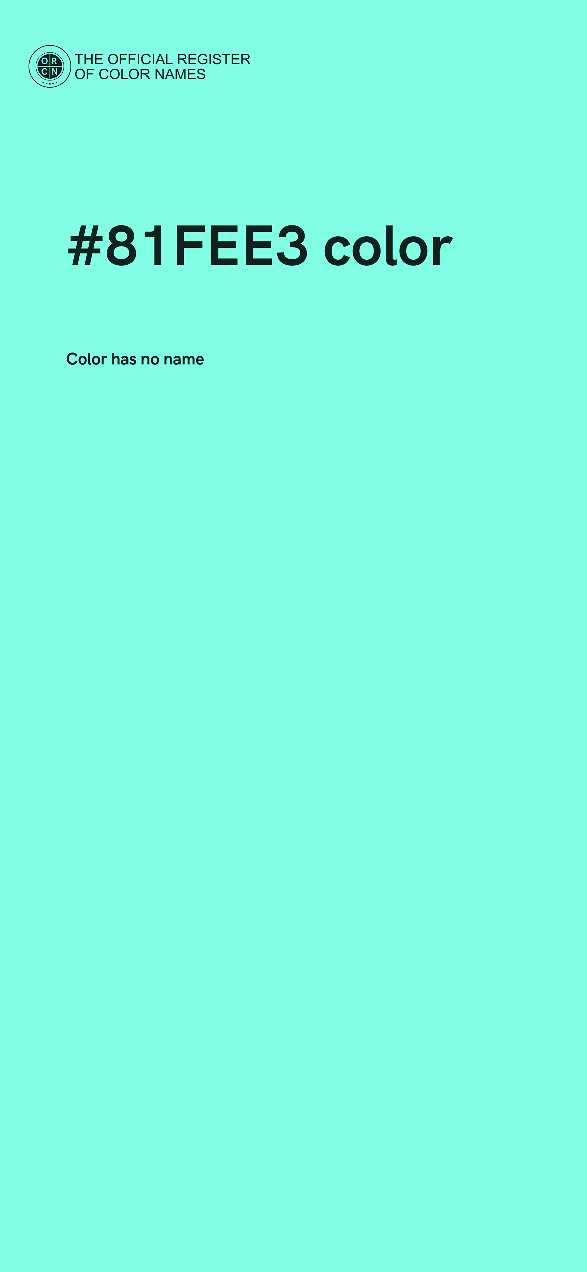 The digital color HEX #81FEE3 belongs to the Cyan Color Family featuring Full Saturation (Saturation Family) and Very Light (Brightness Family).