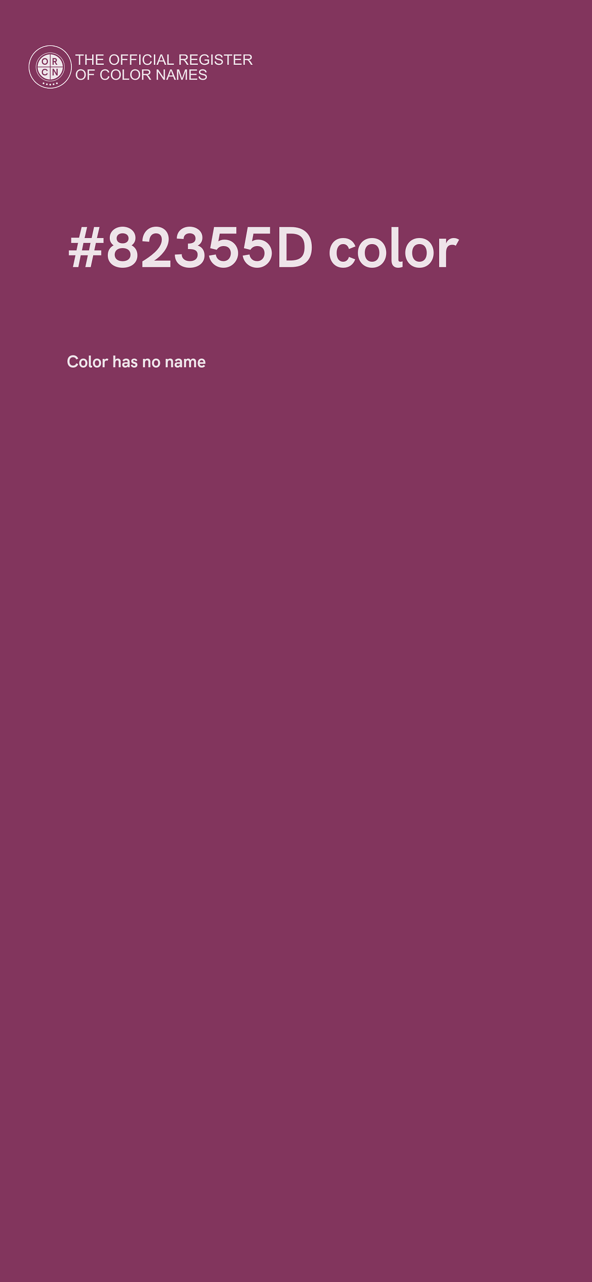 The digital color HEX #82355D belongs to the Rose Color Family featuring Moderate Saturation (Saturation Family) and Neutral (Brightness Family).