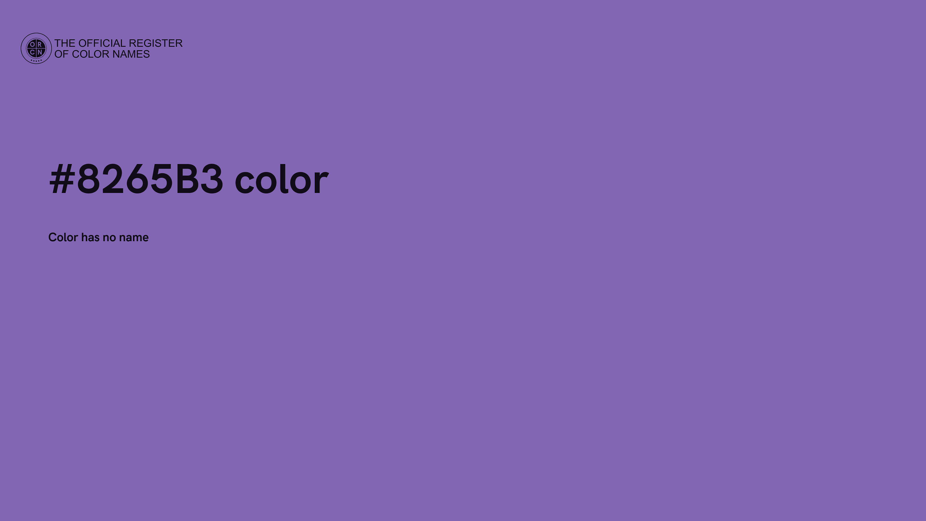 The digital color HEX #8265B3 belongs to the Violet Color Family featuring Mild Saturation (Saturation Family) and Light (Brightness Family).