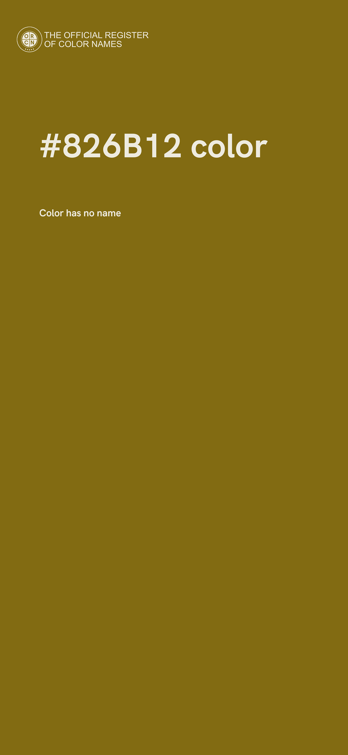 For printing in non digital world, #826B12 is represented in CMYK as 0 Cyan, 9 Magenta, 44 Yellow, and 49 Black (Key) (C:0 M:9 Y:44 K:49).