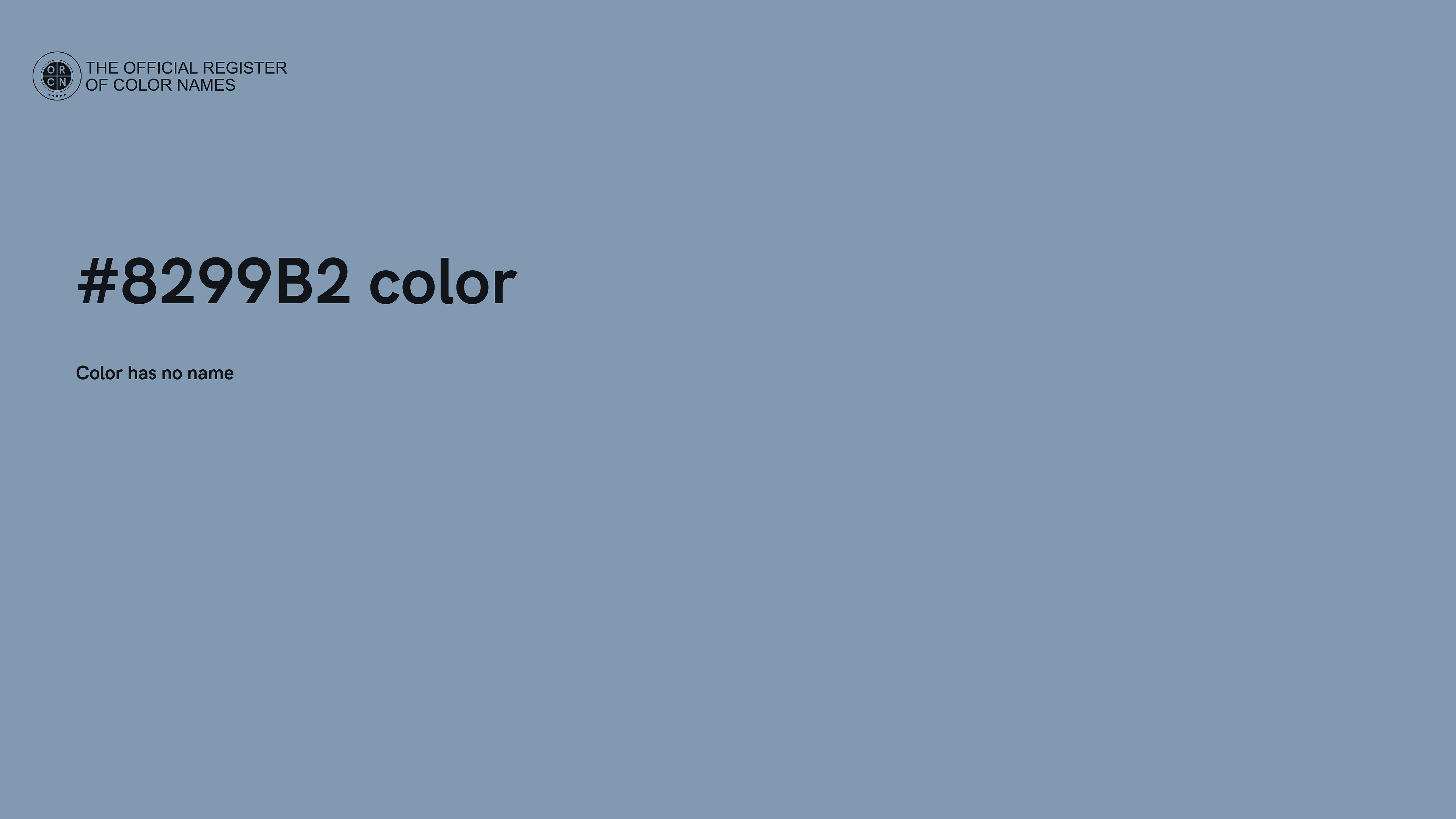 The digital color HEX #8299B2 belongs to the Azure Color Family featuring Low Saturation (Saturation Family) and Very Light (Brightness Family).