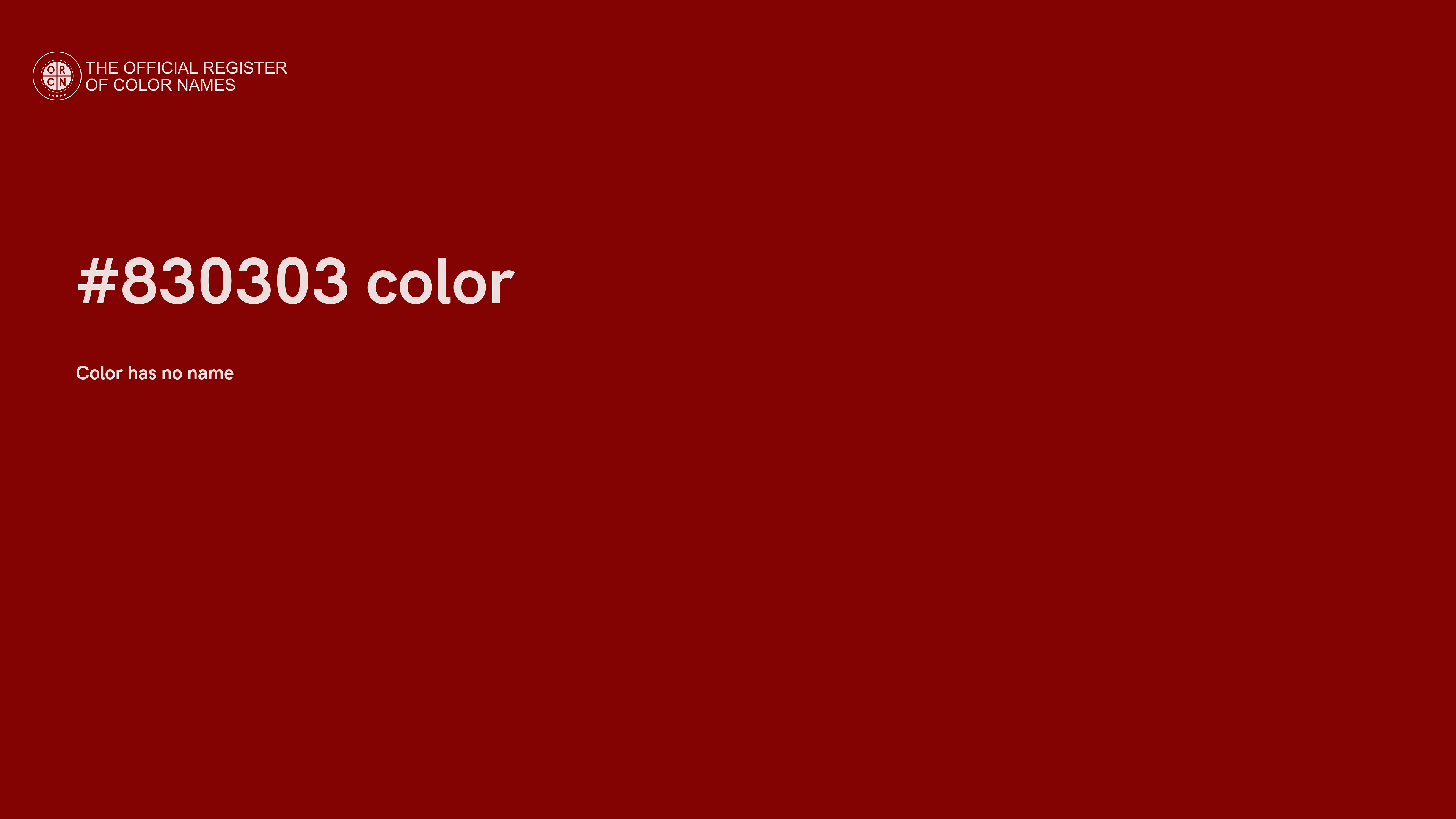 The digital color HEX #830303 belongs to the Red Color Family featuring Full Saturation (Saturation Family) and Neutral (Brightness Family).